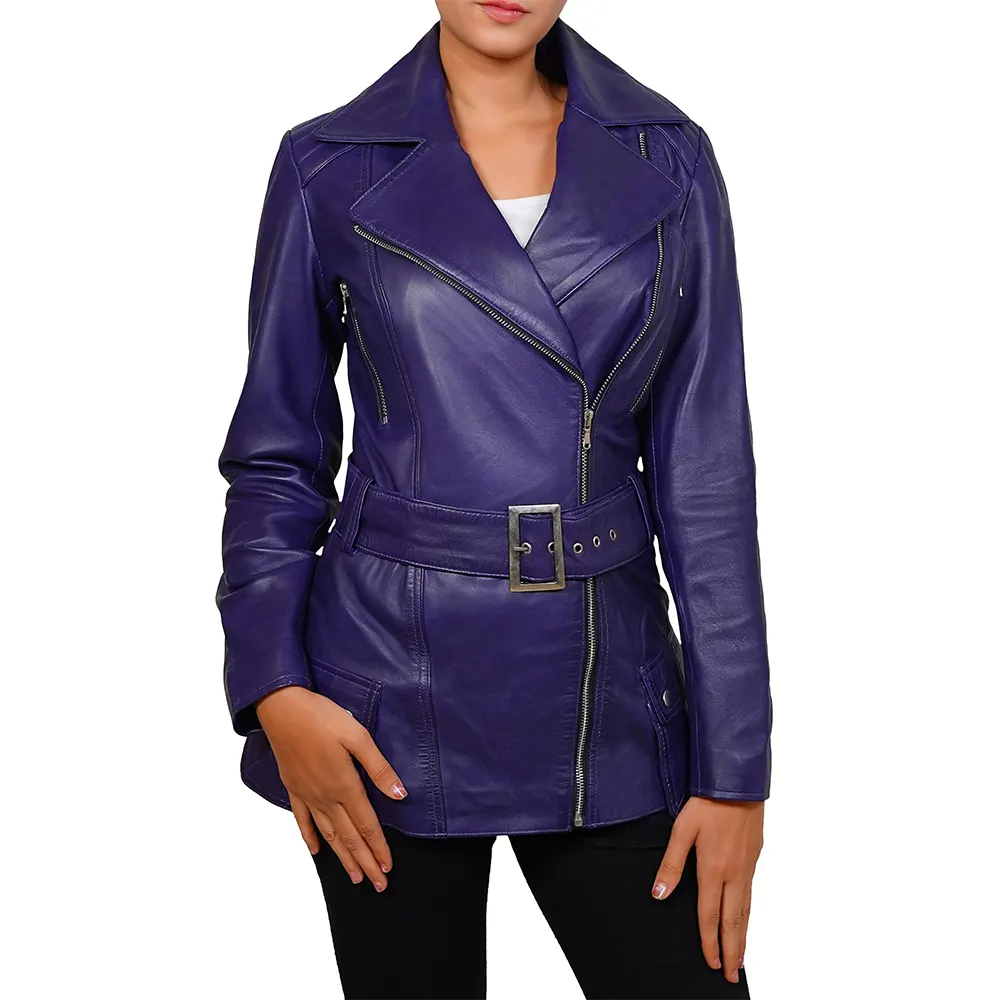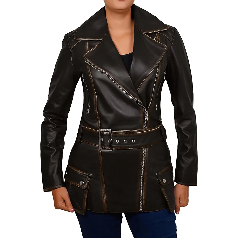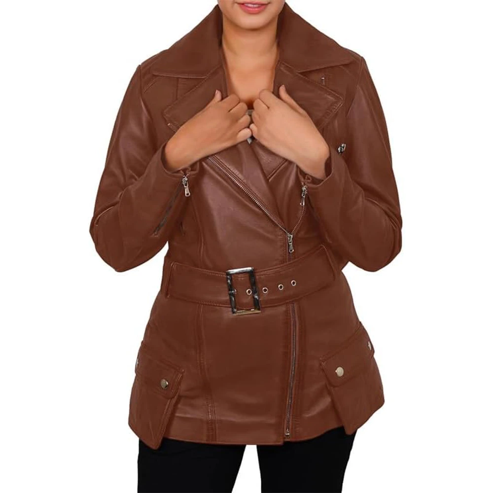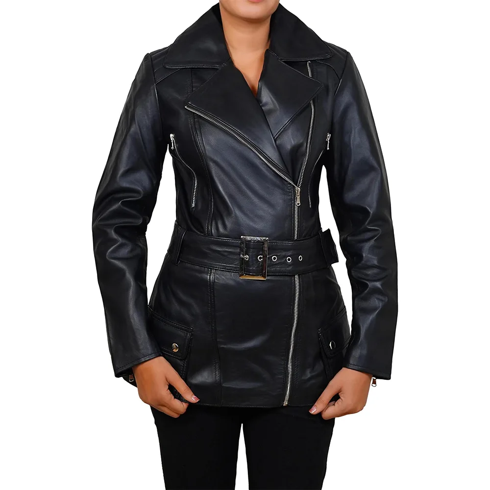 Shop Asymmetrical Leather Biker Style Jacket For Women’s from our Men Biker Jackets collection. The biker style has roots in rebellion and control rather than fashion trends. Developed in the early motorcycle culture, in which riders required jackets that stayed secure at high speeds. Moreover, previous designers created the asymmetrical fronts to keep the wind out. Additionally, the belt prevented flapping during rides. Over several decades, this practical design transformed into an icon of independence and self-confidence. That heritage still defines this jacket today. The angled collar, robust closures, and heavy-hardware details are not only for visual appeal. This is the history that gives the jacket its irresistible authority. With every wear, it communicates confidence, edge, and individuality.