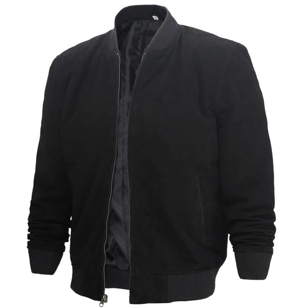 The black suede bomber jacket for men is perfect for staying warm and fashionable. Suede has a smooth, velvet-like texture that feels soft to the touch, giving it a rich and premium feel. It is made from the undersurface of the goat and is more delicate than genuine leather. Its unique texture and style make it a popular choice for breathable jackets.