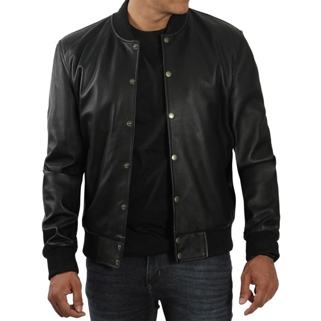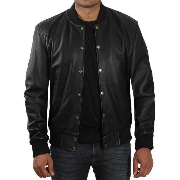 Our bomber jacket and button-up are the perfect way to bring charm to your ordinary outfit. The black leather jacket is made of lambskin or PU leather with polyester insulation for added comfort and warmth. The jacket comes with stunning details like button closure with silver button rows, a standard ribbed collar, and long sleeves with ribbed cuffs for a sleek and polished appearance. The additional two side pockets, extra mobile pocket, and two inside pockets make it practical for everyday wear. This Bomber Jacket Men’s Black is ideal for roadside adventures and casual wear due to its tough and vintage design.