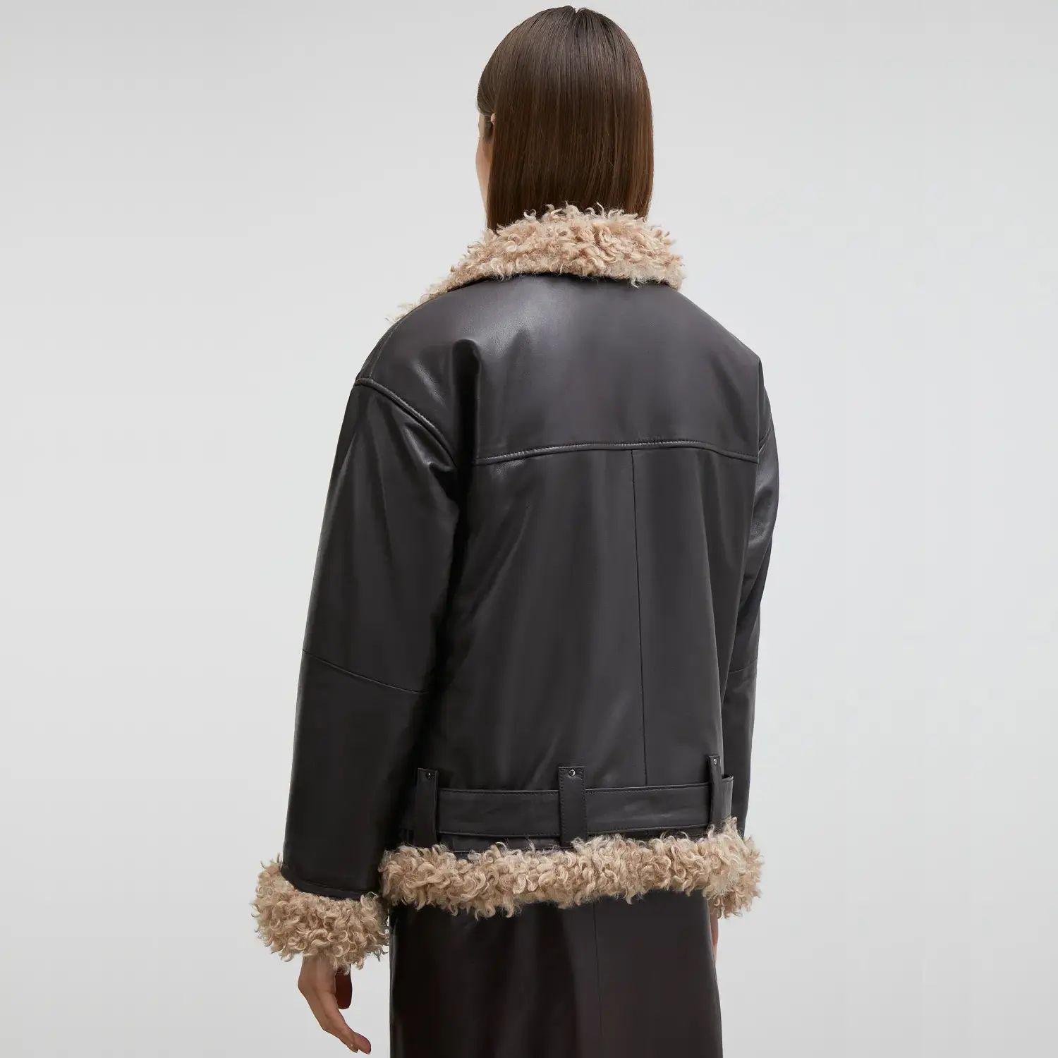 Alexandra RussellVerified OwnerWore this out on a cold evening, and it kept me super warm! The faux fur collar feels luxurious, and the lambskin material has a clean, polished finish. Great for casual outings.