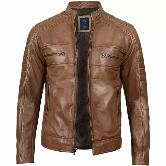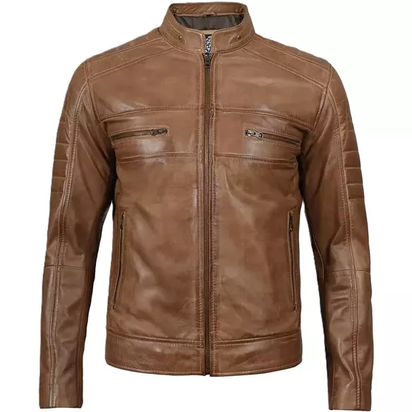 This brown leather jacket mens vintage is the perfect mix of comfort and fashion! Made from soft lambskin or PU leather, it has a casual old-fashioned look. The light camel color adds a sense of freshness to your outfit.