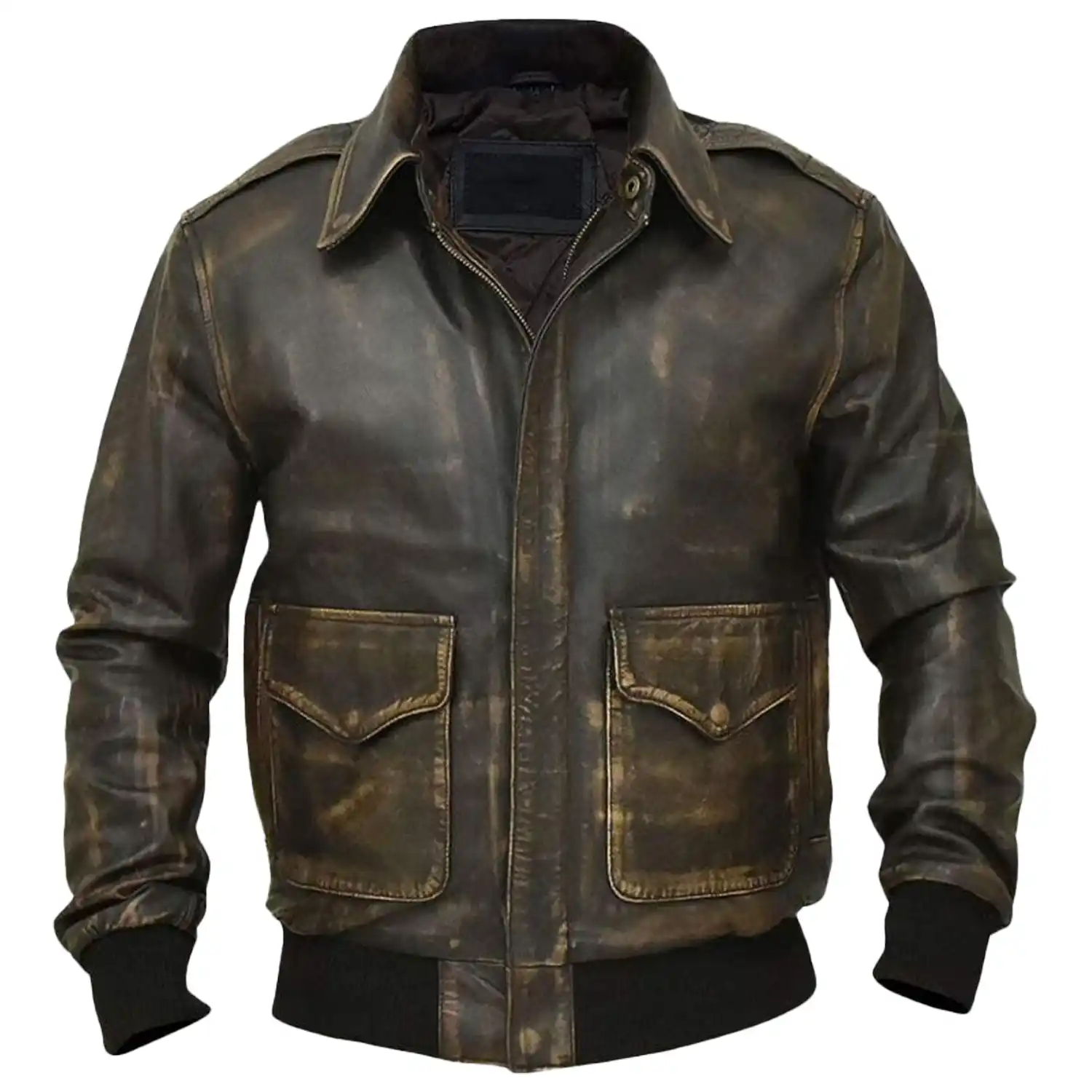 The distressed brown leather bomber jacket mens is water-repellent due to a specialized treatment applied to the leather, which creates a protective barrier against moisture. This treatment prevents water from penetrating into the leather surface and helps to preserve the jacket’s durability and appearance. Over time, it will maintain the quality of mens brown leather aviator jackets to stay stylish and practical.