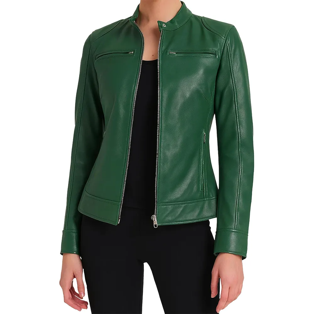 What truly makes this jacket different is its wide range of color choices. It allows every woman to express her personality through her choice. The classic black color is everyone’s favorite due to its eternal and confident feel. Moreover, beige and white provide a minimalist, clean appearance to people who prefer subtle elegance. Red and cognac appeal to those wearers who desire warmth, power, and high fashion representation. Furthermore, the lighter shades, such as pink and light pink, are the favorite colors of women who like mixing femininity with biker style to form a unique contrast. People prefer green and blue because they are unique and convey a relaxed, peaceful sophistication. In addition, brown has a rough, vintage look. Every single color has a story, making the Dodge Women Biker Style Multicolor Leather Jacket more than an outer garment. In short, it is a reflection of personal style and identity.