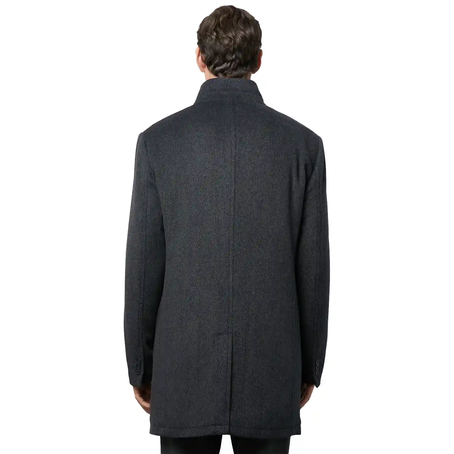 Mens Grey Longline Wool Blend Funnel Neck Coat