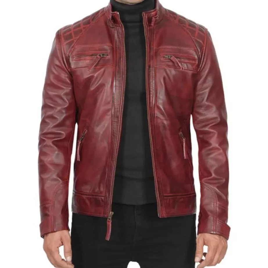 Maroon leather biker jacket is not like your ordinary jacket but holds a magical power to transform your boring look into an extraordinary one. This jacket was initially designed to protect bikers from injury and road accidents but because of its bold design, it rapidly makes its way in the world of fashion. This maroon leather biker jacket is manufactured from premium leather that complements its vintage finish. Its lapel collar, and zip-detailing front closure elevate its charm further while its deep maroon color adds a bold touch. From road adventures to professional bike racing, this maroon moto jacket will help you stay stylish with unique swag.
