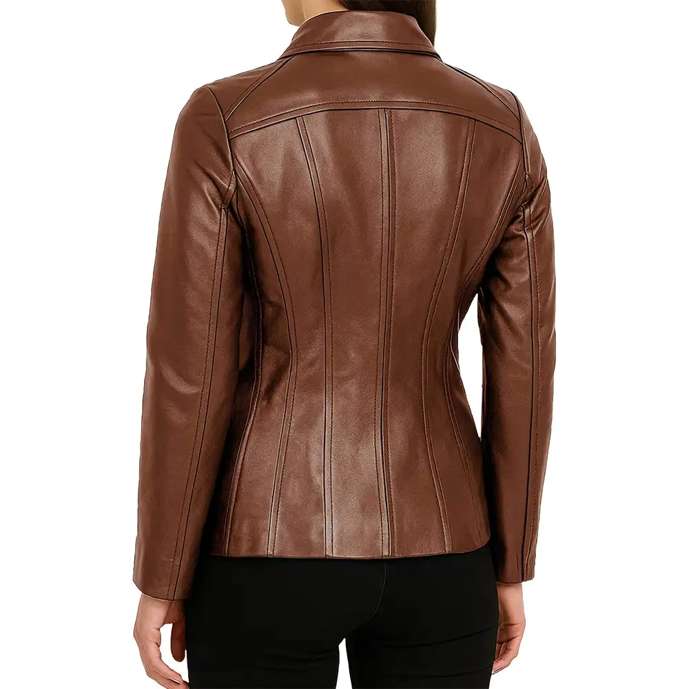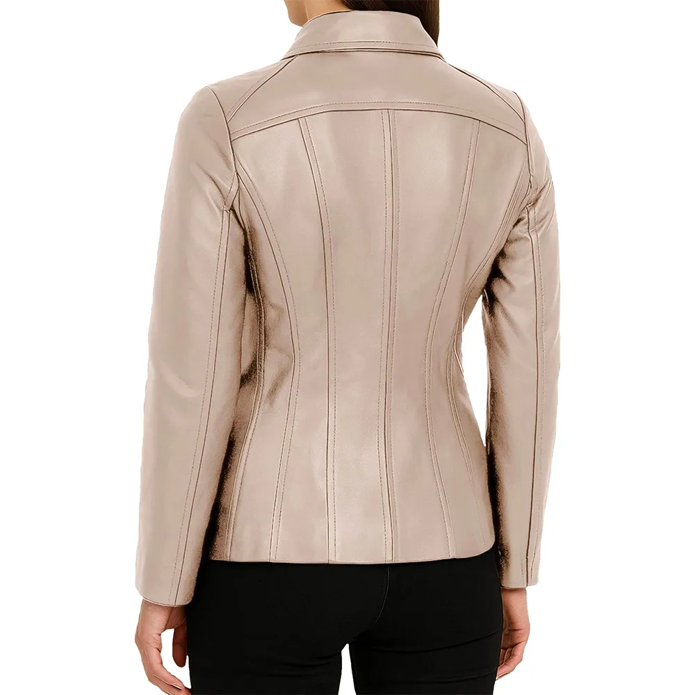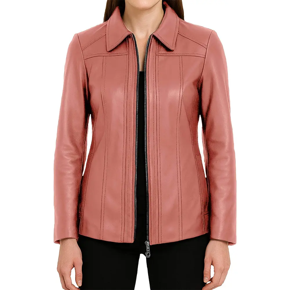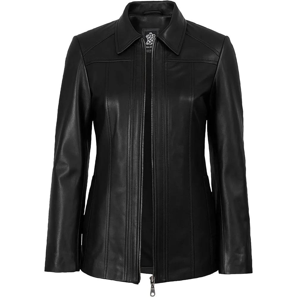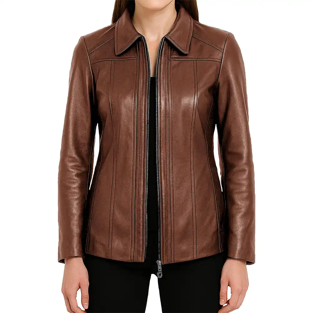 Marsha Shirt Collar Zip Up Genuine Leather Jacket For Women