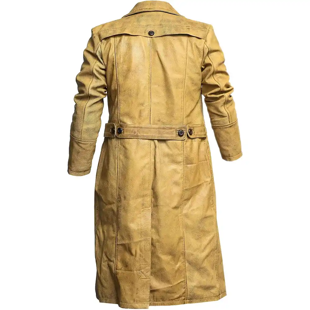 The Distressed Leather Duster Trench Coat stands out through thoughtful detailing and lasting value. The natural fit is achieved by the adjustable belt at the back. Moreover, it prevents the coat from tightening and limiting the movement. Its long-form design increases resistance to the wind and creates an impressive, tall structure. The coat is available in rich Brown and bold yellow colours. Each shade offers a classic and expressive style. The sturdy stitching withstands rough, frequent use, so that the coat does not lose shape season after season. What truly defines this coat is its character. Furthermore, instead of fading, it matures well with time. Men who want a duster trench coat that makes them look and feel confident, durable, and endlessly present, this coat will be an investment that is powerful and practical, as well as a deeply personal experience.