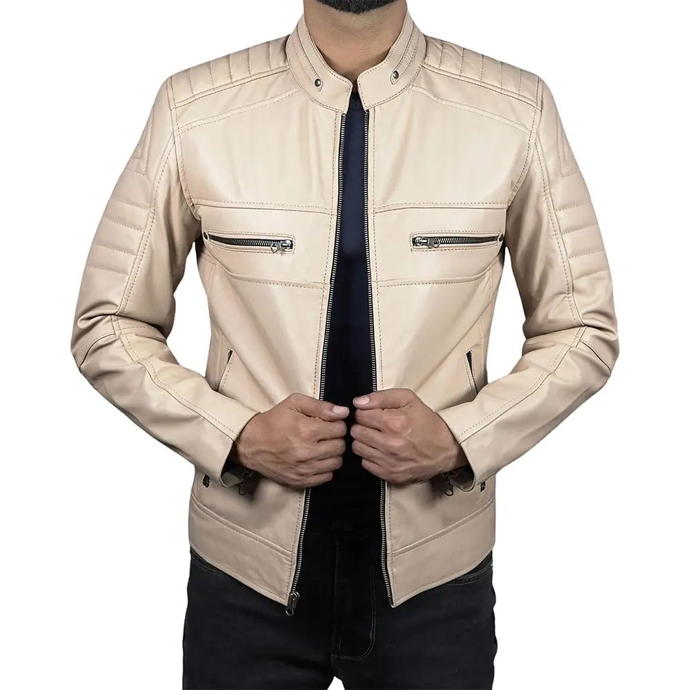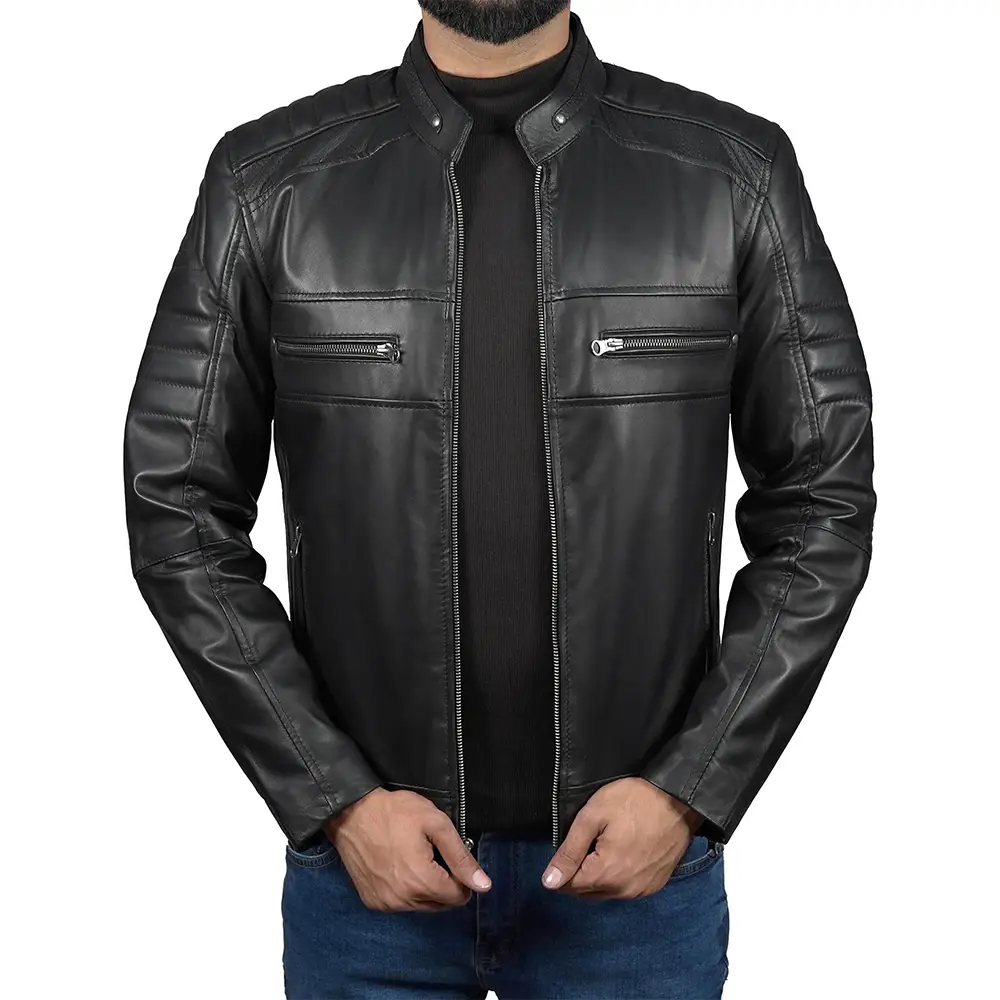 Buy Men’s Lambskin Leather Cafe Racer Jacket For Sale from our versatile cafe racer jacket collection. Designed using natural lambskin leather. It has a smooth shape that naturally molds to the body over time. Moreover, its high-quality YKK zipper closure makes it last longer and perform smoothly, reinforcing the jackets high quality construction. Full-length sleeves with zipper cuffs allow adjusting and a snug fit. Furthermore, this feature enhances its functionality and attitude. The designer well-designed the storage with four exterior zippered pockets that allow safe access to essentials without disrupting the jacket’s clean lines. Two inner pockets and a further mobile pocket provide everyday functionality without compromising the minimalistic racer shape. The premium, soft viscose interior takes the comfort level to the next step. Therefore, you will be able to wear the jacket long and not feel heavy and unpleasant.