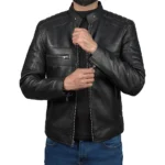 Men’s Black Lambskin Leather Cafe Racer Jacket