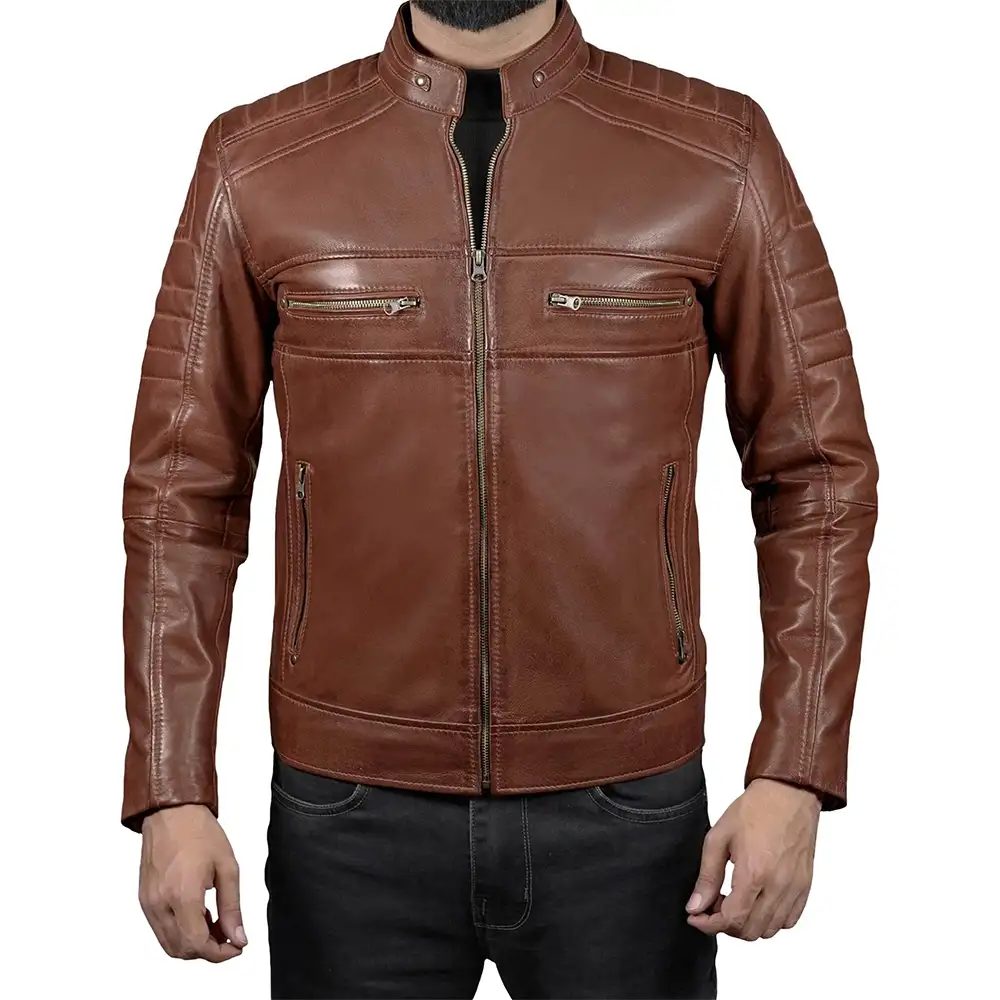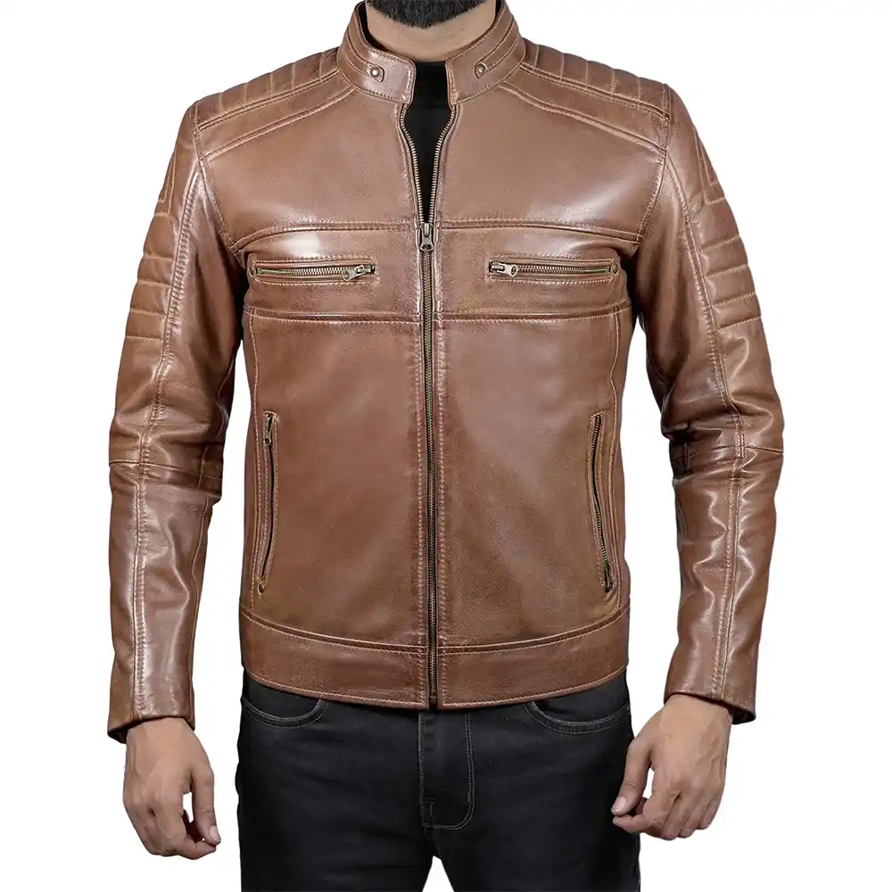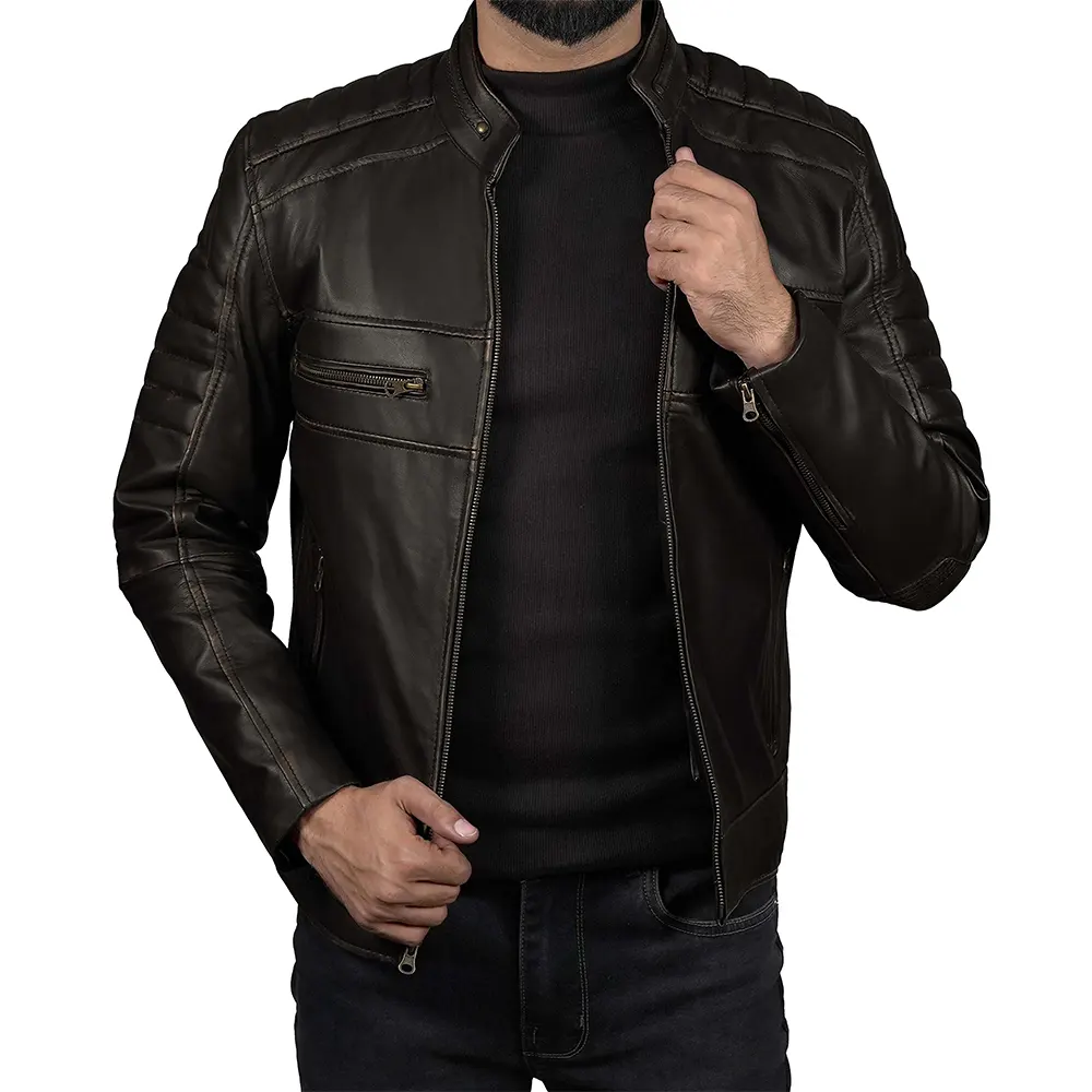 The rich culture of cafe racers is rooted in the Men’s Lambskin Leather Cafe Racer Jacket. This culture emerged in the 1960s, when riders defied road speed limits between cafes and wore minimal but strong clothes. This jacket is just an echo of that spirit, clean, aggressive, purpose-driven. Moreover, the simplistic shape, snug fit, and absence of extravagant embellishment characterize the cafe racer fashion. Therefore, it allows mobility, speed, and confidence. The stand-up collar adds to the clean-cut, contemporary feel without sacrificing the traditional racer appearance. Additionally, it offers a refined yet rebellious appearance that feels timeless rather than trendy. Our designers created the jacket for men who value tradition, accuracy, and understated masculine power.