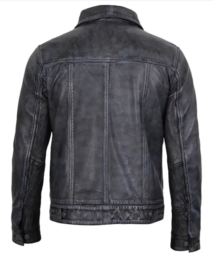 Men’s Real Leather Black Trucker Jacket For Sale