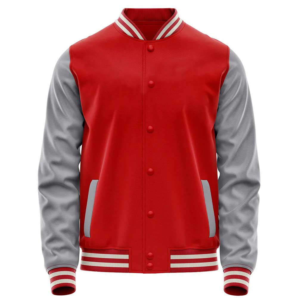 Practicality meets style with its snap-button front closure, which provides easy wear and adds to its traditional varsity vibe. Two spacious side pockets not only enhance the apparel’s functionality but also add to its effortless charm. Inside, a soft viscose lining ensures comfort, making this attire suitable for all-day wear. Versatile and stylish, the Red And Gray Letterman Jacket