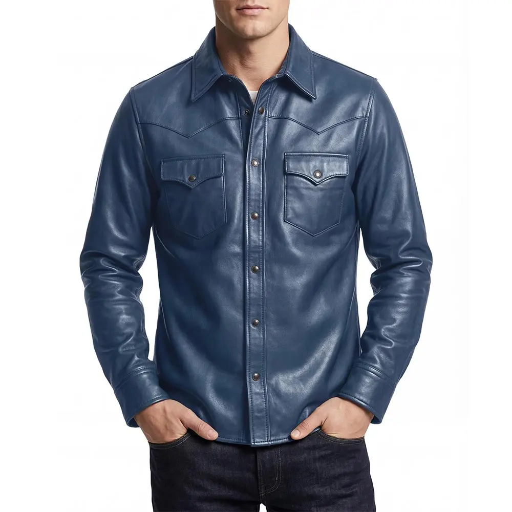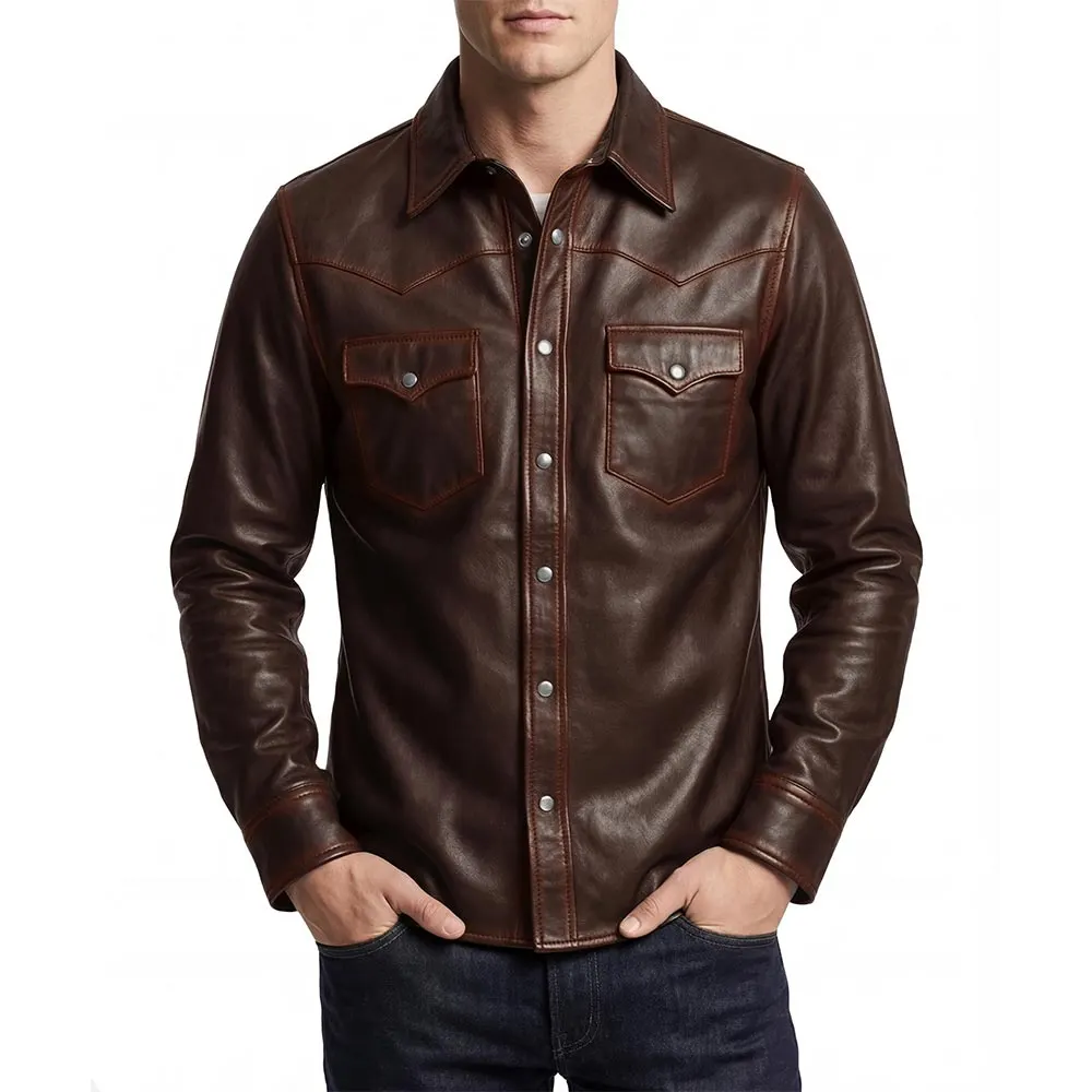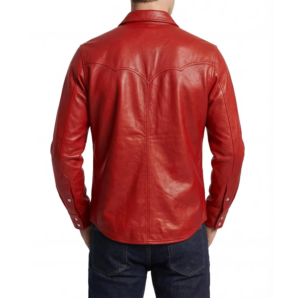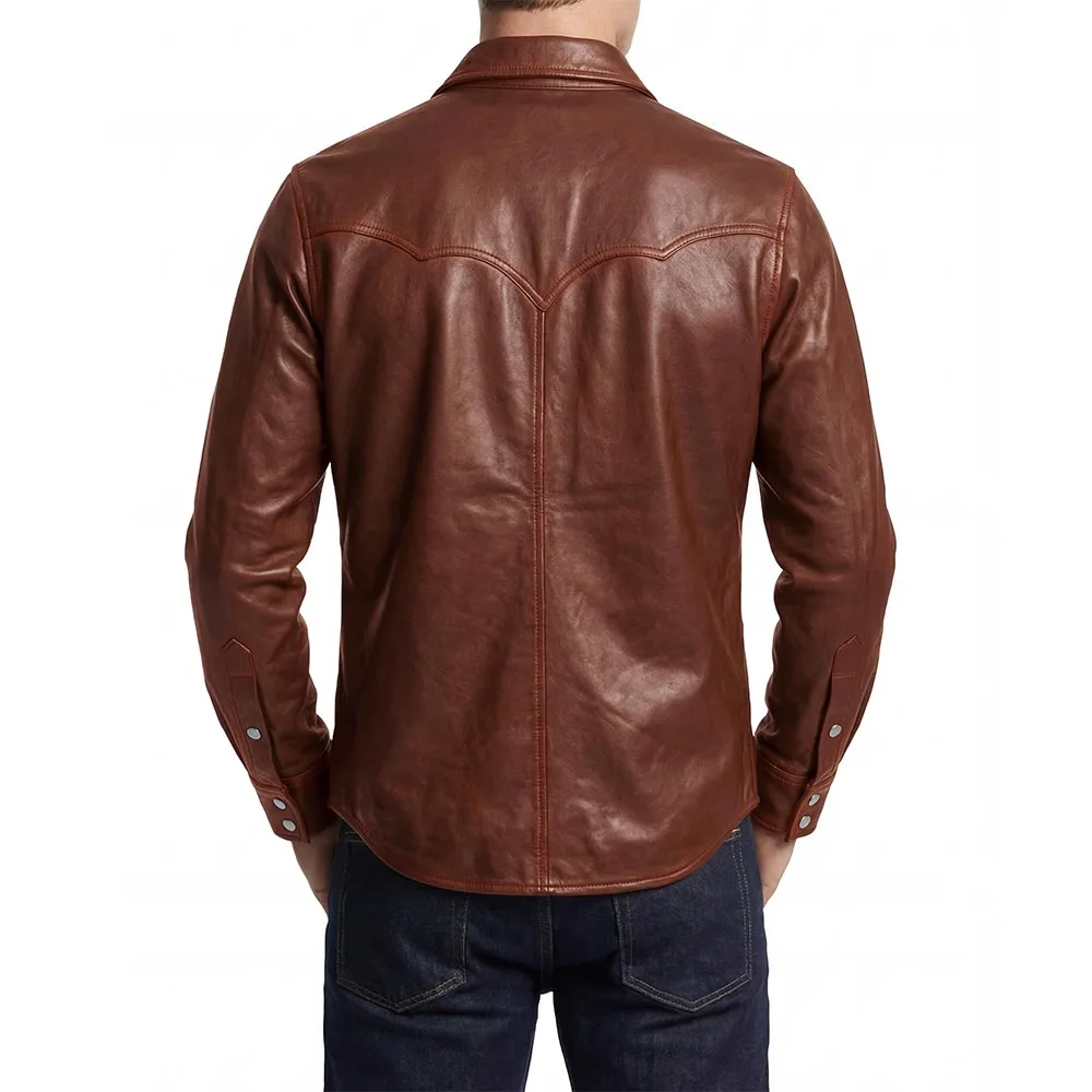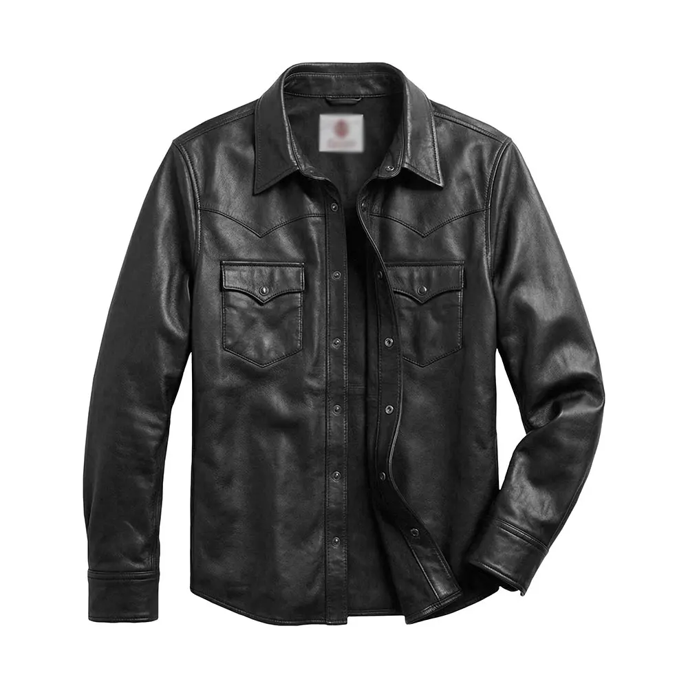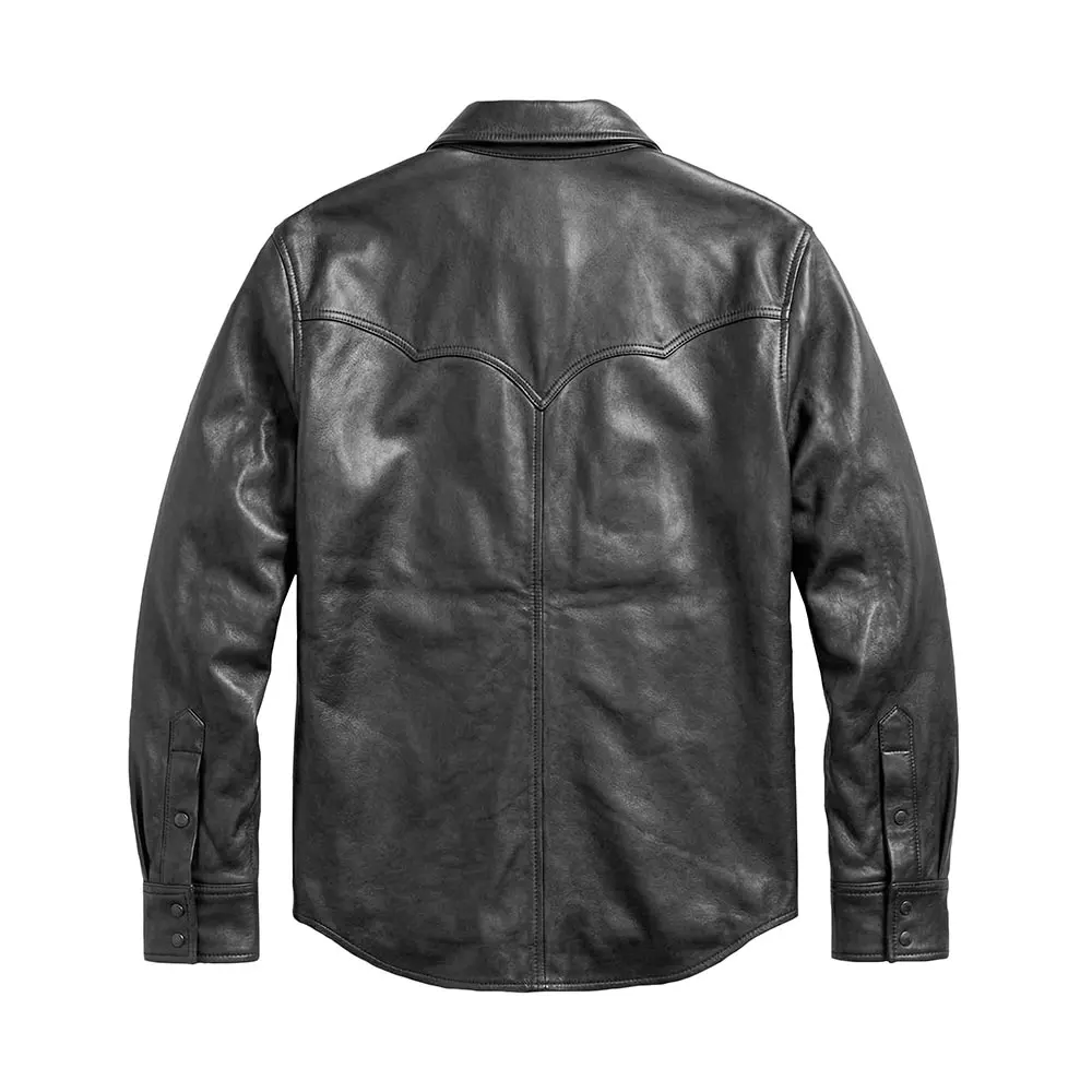 Men's Shacket Leather Shirt Black For Sale