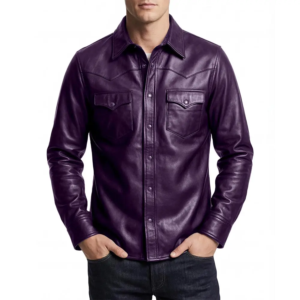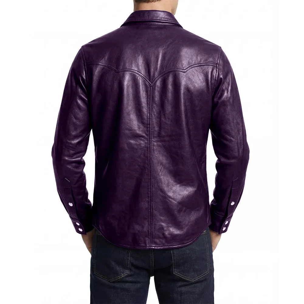 Men’s Shacket Black Genuine Leather Shirt For Sale