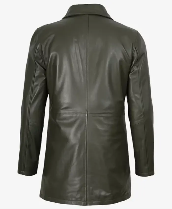 Olive Green 3/4 Length Leather Car Coat