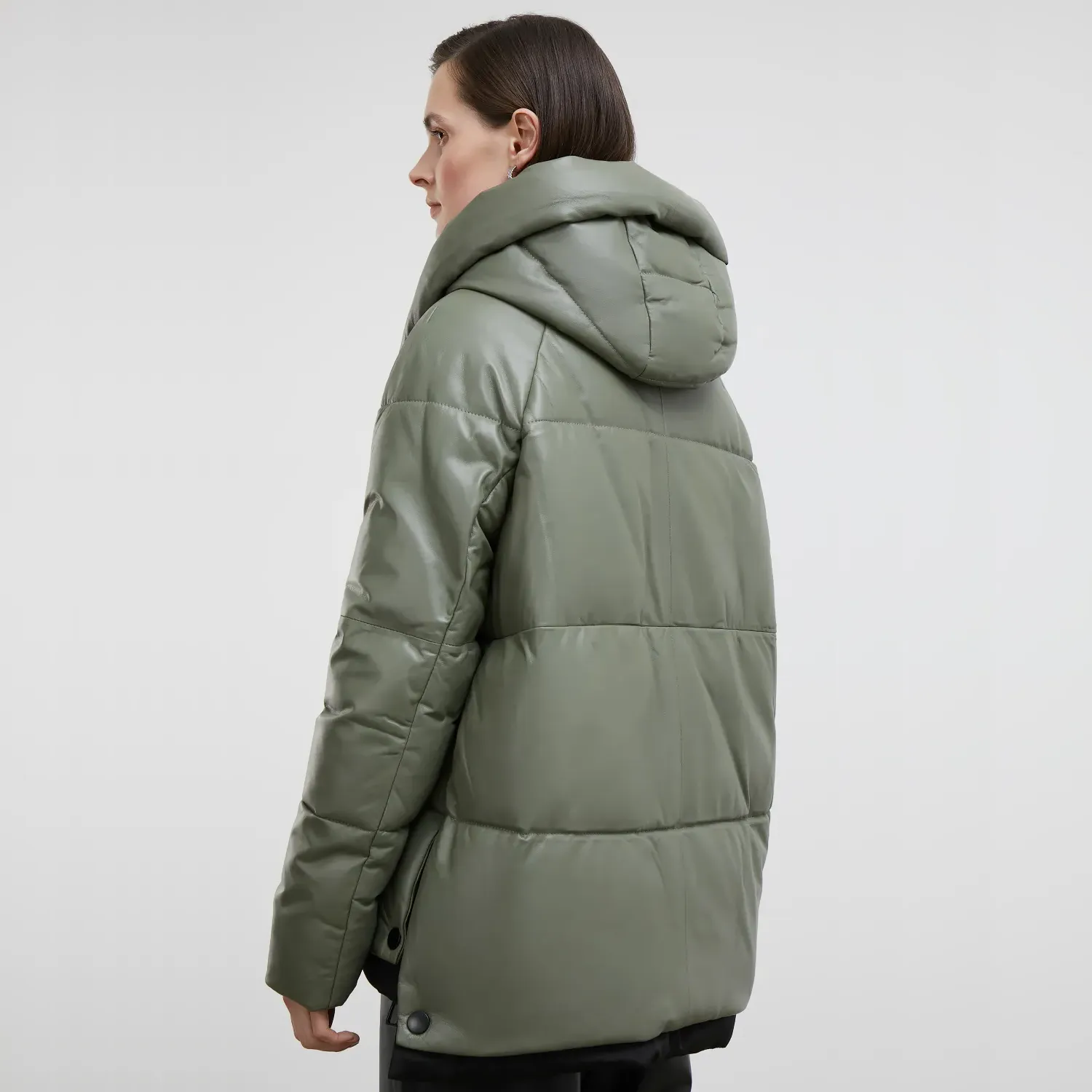 - Adjustable Fit: The green puffer jacket ladies has a stand collar for a traditional touch and a button-down closure that helps lock in warmth when needed. However, the olive green finish will make this jacket your favorite garment for colder days.