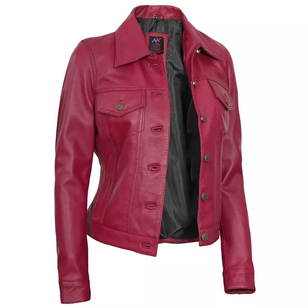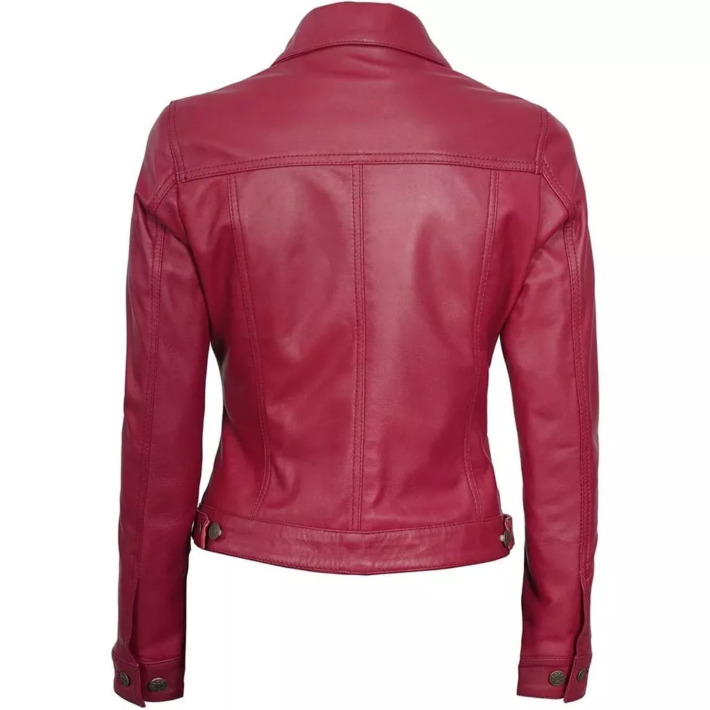 Pros Of Stylish Pink Trucker Leather Jacket Womens
