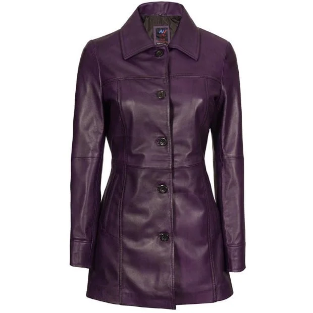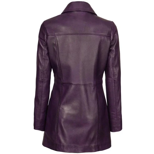 Grace MorrisonVerified OwnerThis coat has a rich purple hue that stands out beautifully. The vintage finish of the leather is exquisite. I love how warm it feels on cold days!