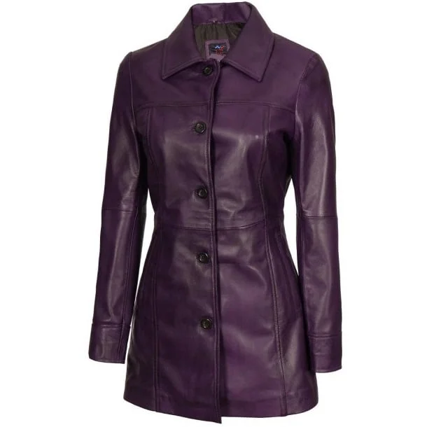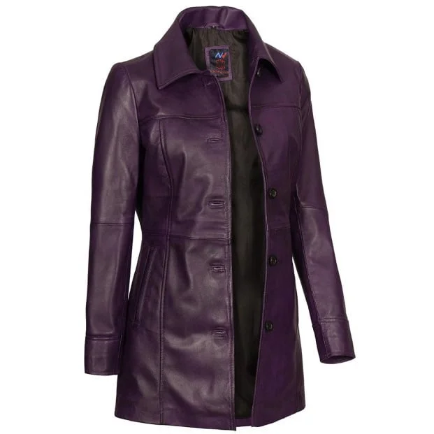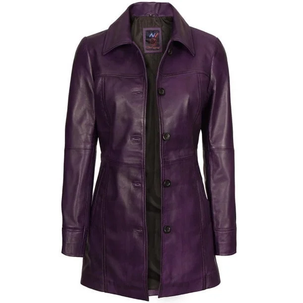 The purple winter coat womens offers style and comfort in a single package. This coat is manufactured with lambskin and PU leather with an inner soft lining of polyester that brings warmth to its vintage charm. The minimalist feature of button-down closure and shirt collar with long sleeves increase its visual appearance. At the same time, the spacious two side pockets and two inside pockets make it practical for everyday wear. Whether you want to dress up for night parties or add a pop of color to your wardrobe, this coat is perfect for all occasions.