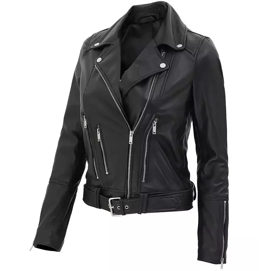 Real black leather perfectly complements the feminine energy of every woman so that they can accomplish everything with style and confidence. This ladies black real leather jacket has a lapel collar, and long sleeves with zippers that will protect you against the coldness of winter. Whether you are going to work, enjoying vacations, or riding on the bike, this jacket will make you eye-catching among others.