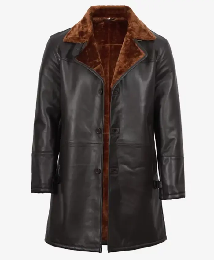 Real Leather 3/4 Length Dark Brown Faux Shearling Coat creates an immediate sense of warmth, depth, and winter confidence. Besides, the real leather exterior is very resistant to wind, friction, and seasonal wear. The dark brown color adds understated richness and masculinity. Thus, the coat looks powerful without being overwhelming. Moreover, the 3/4 length design enhances coverage while maintaining balanced proportions. As a result, movement in cold weather becomes safe and comfortable. Long sleeves also provide complete arm insulation for prolonged outdoor use. Consequently, the coat is a reliable companion in demanding environmental conditions. In the meantime, the shearling lining provides a warm enveloping feeling that blankets the body and covers it evenly. Overall, this coat is a combination of outdoor functionality and indoor comfort, making it an immediately reliable winter jacket.