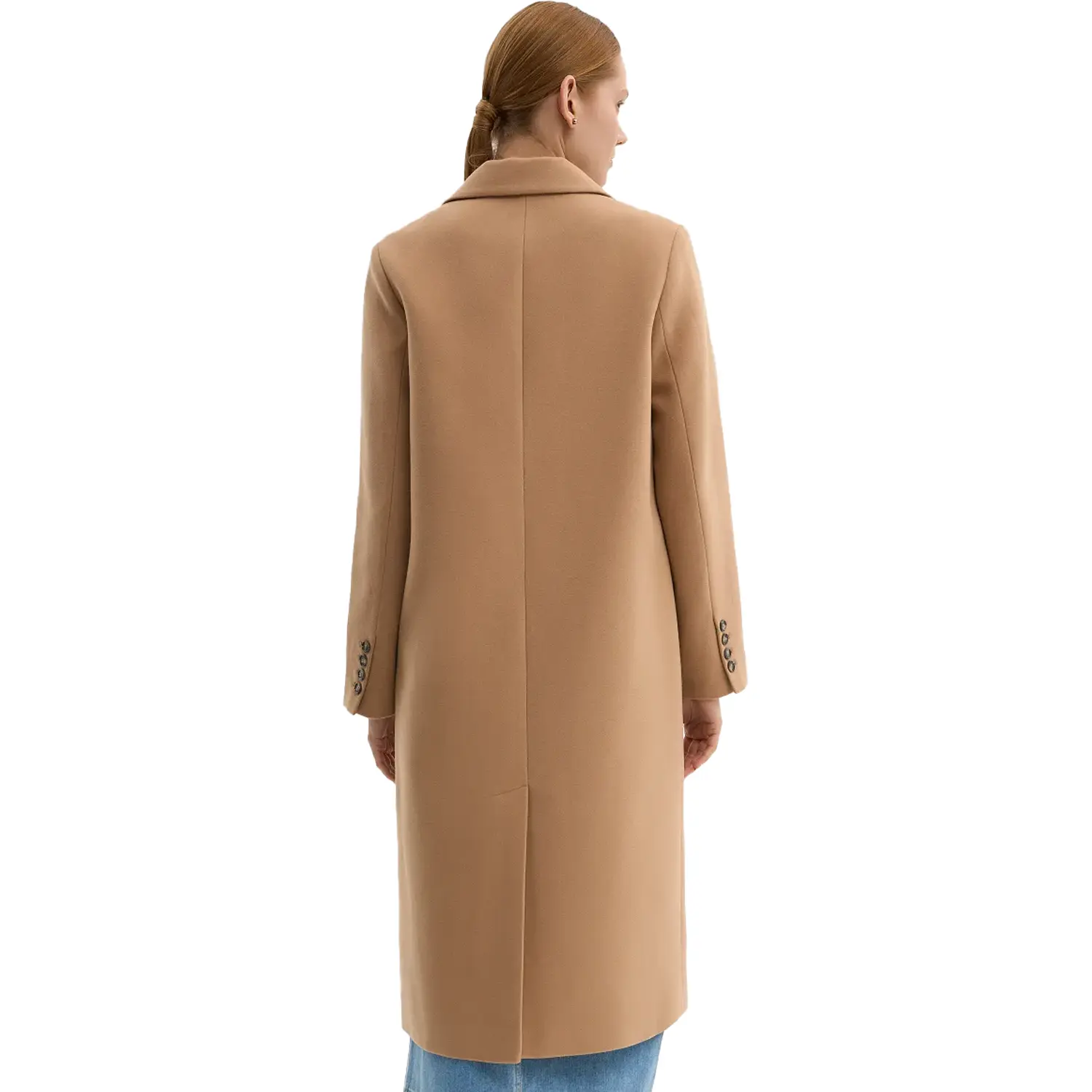 Tan Wool Tailored Longline Button Coat With Lapel Collar Womens