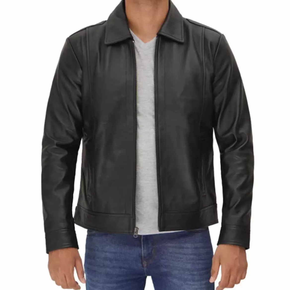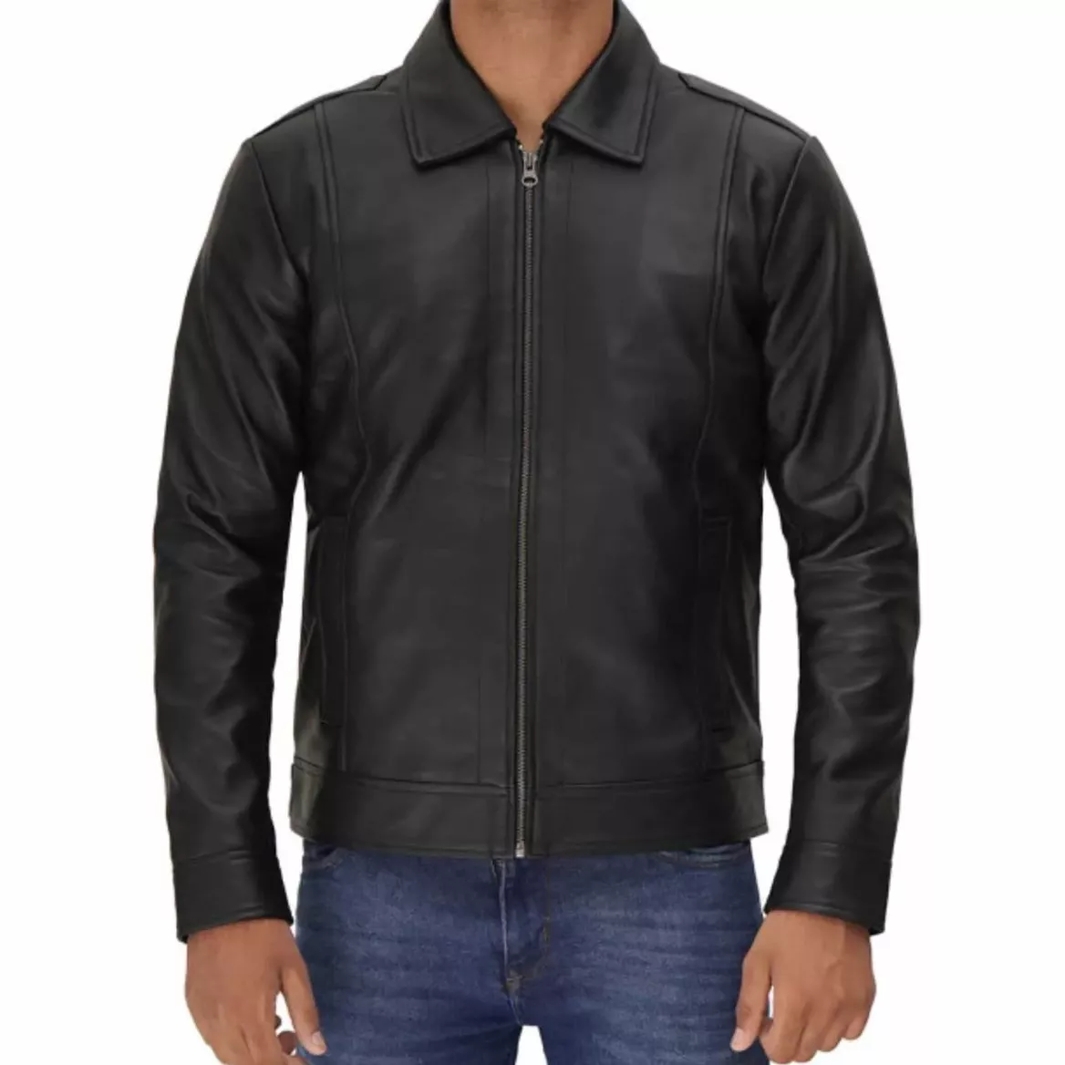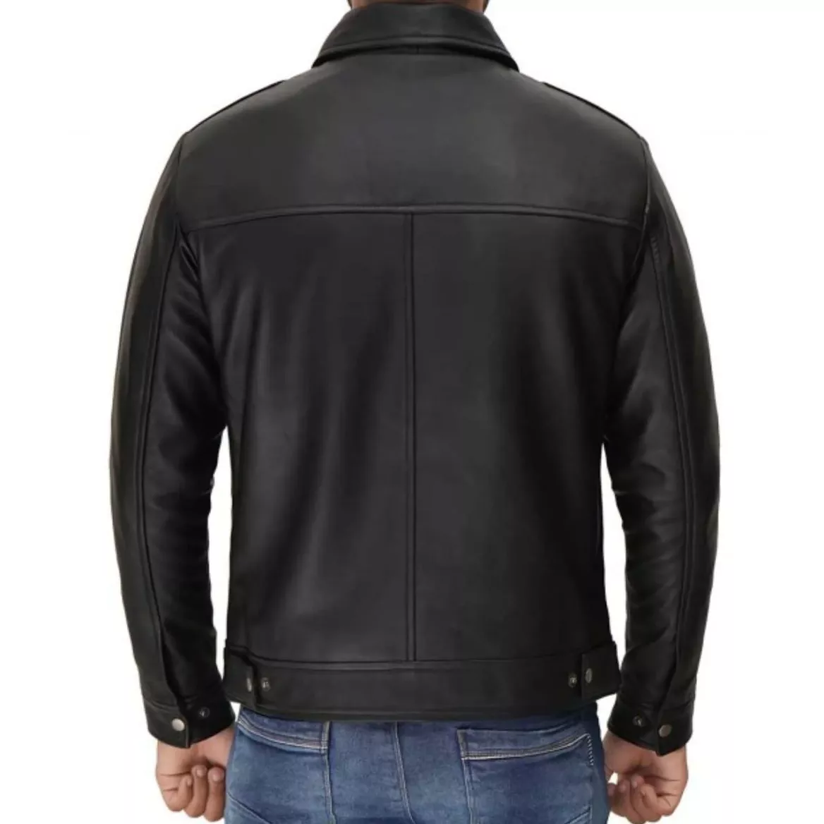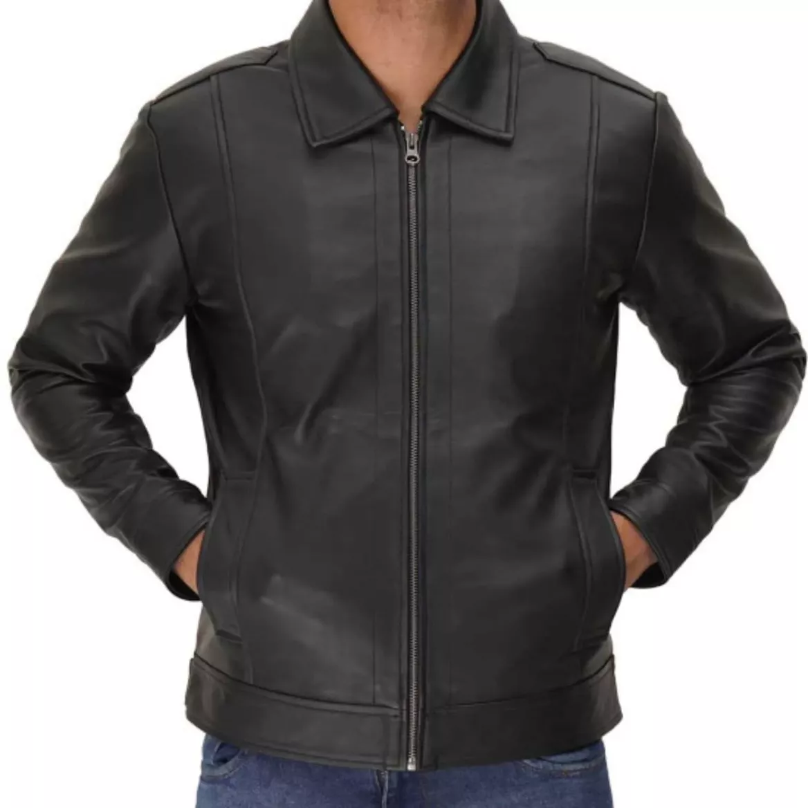 Step up your fashion game with the vintage black leather jacket, an essential for every modern man. a must-have for any guy who loves style. Made from soft lambskin and PU leather, this jacket has a cool vintage look that works for any occasion. The classic shirt collar and cafe racer design give it a timeless feel.