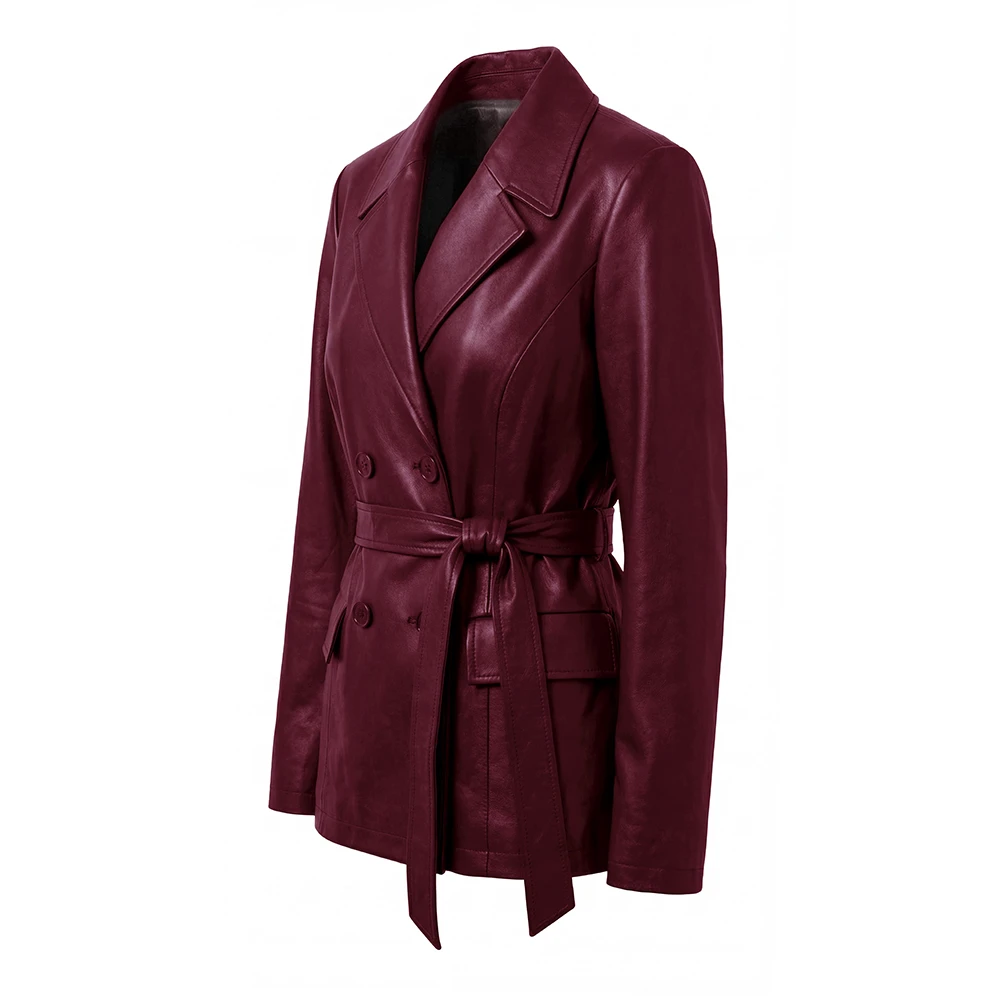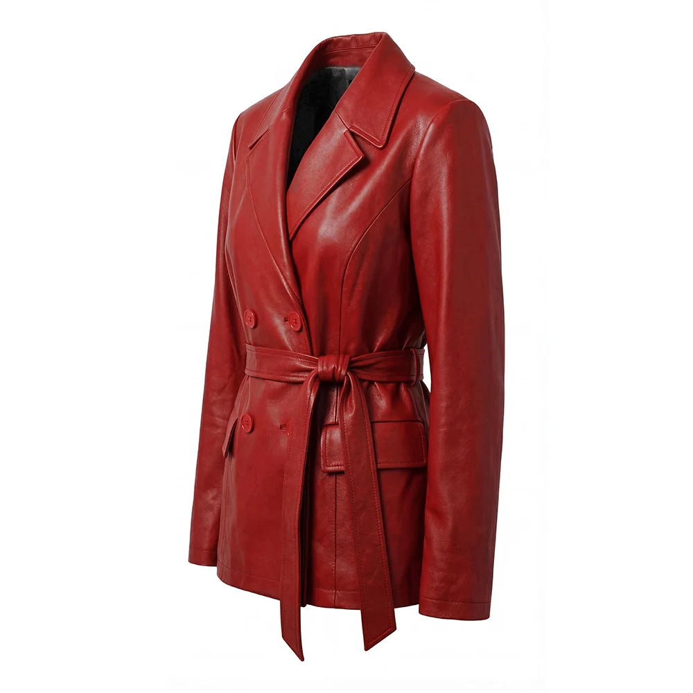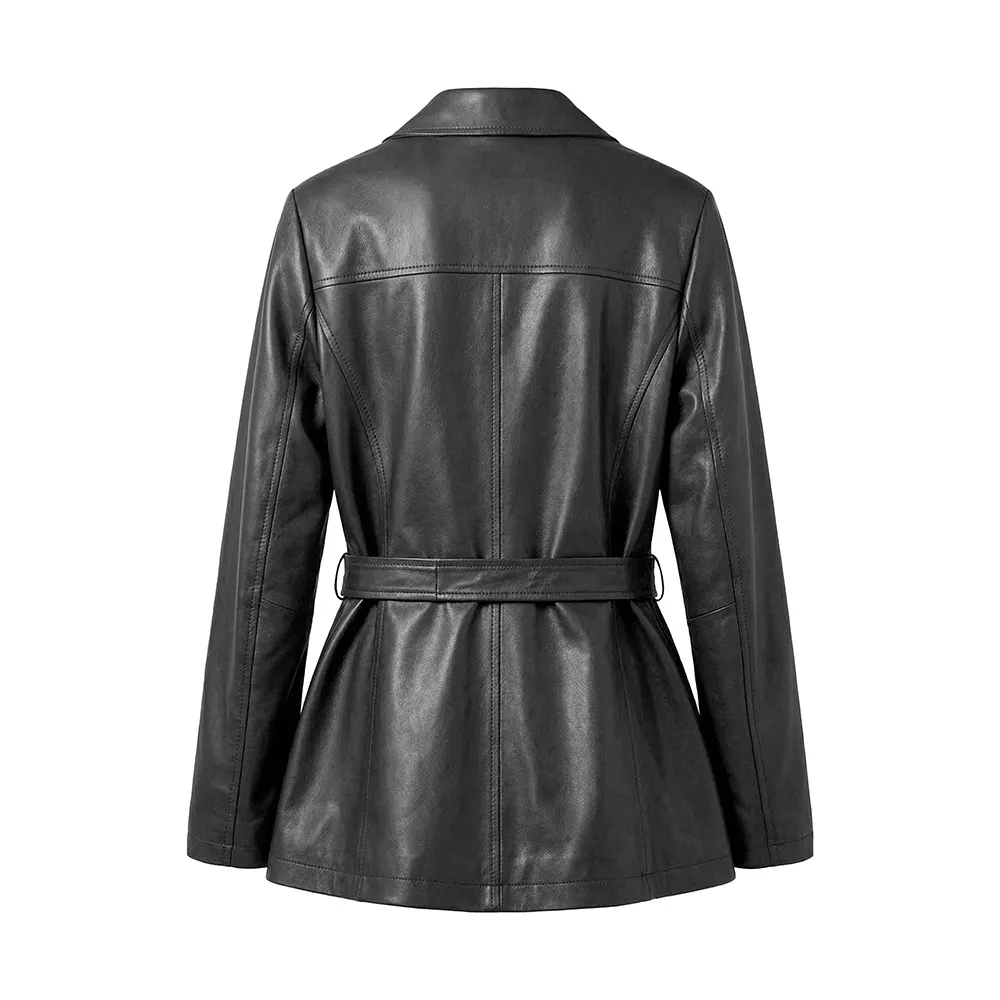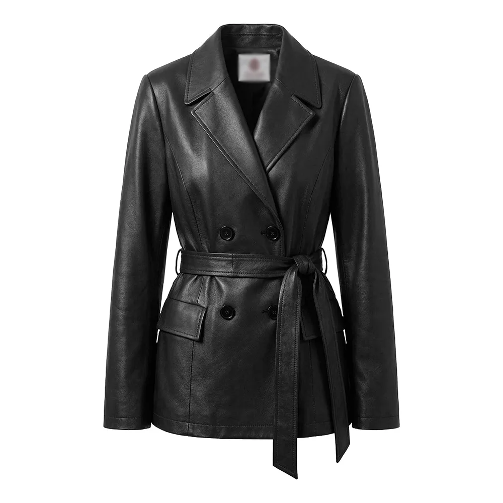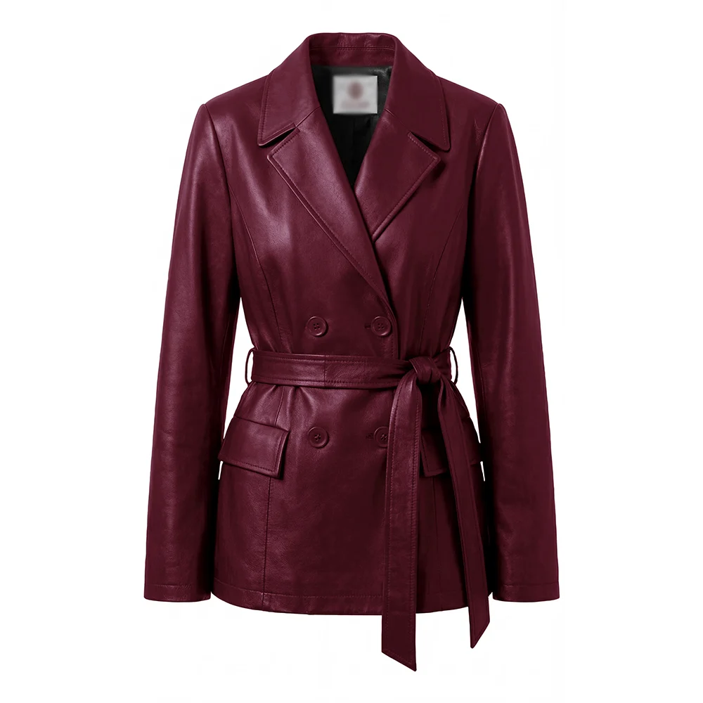 Women Merina Double Breasted Genuine Leather Blazer For Sale