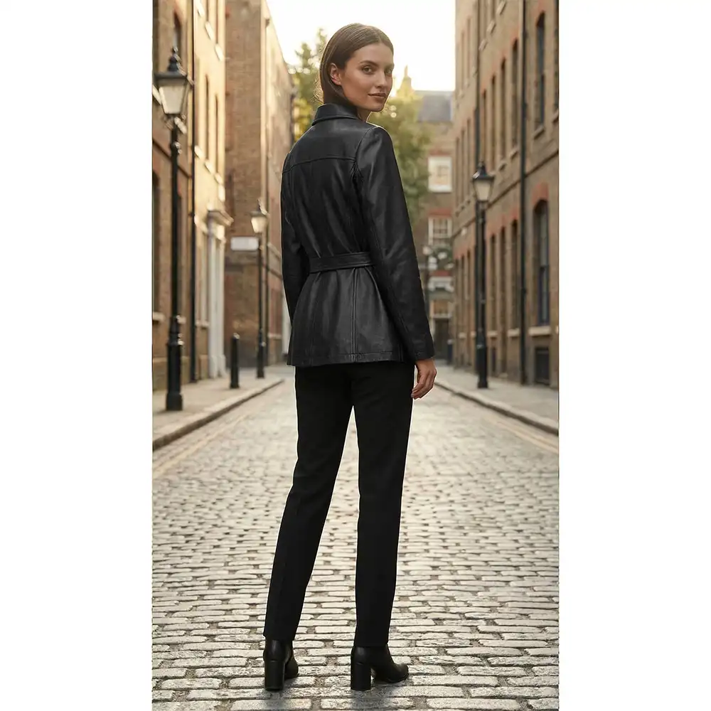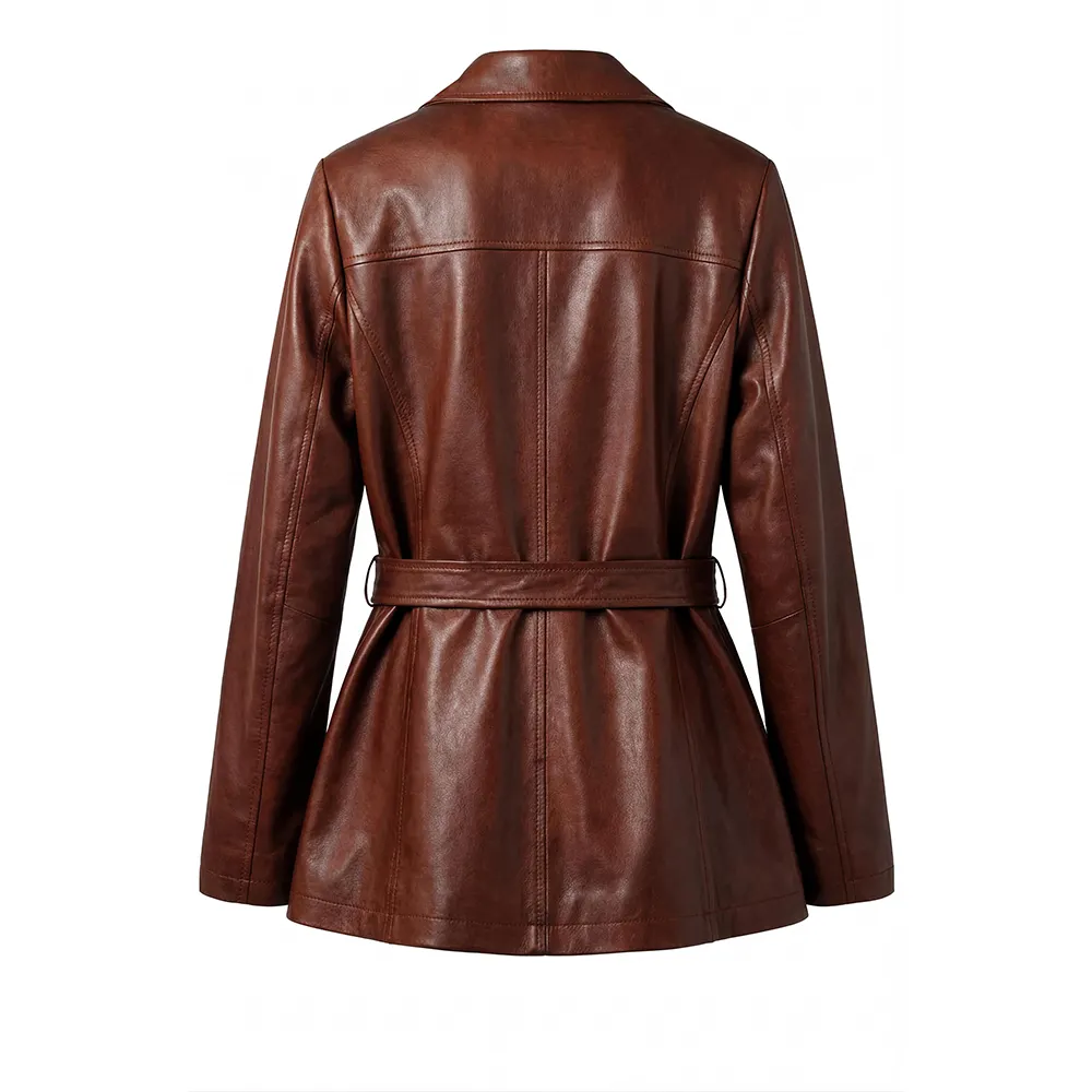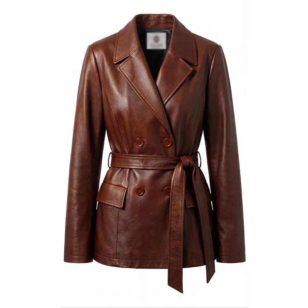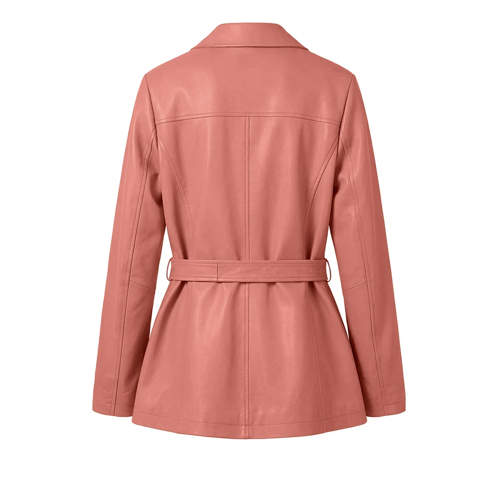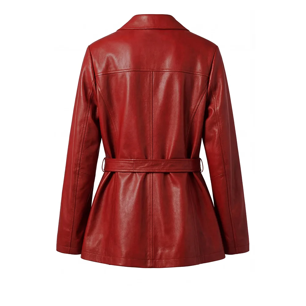 Women Merina Double Breasted Genuine Leather Blazer For Sale