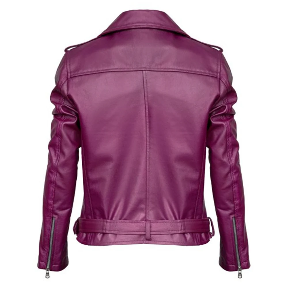 Women Purple Leather Biker Jacket