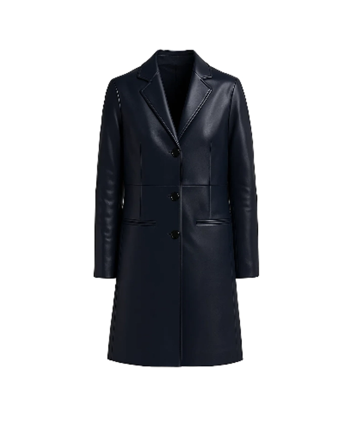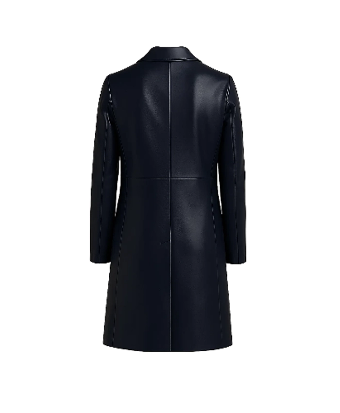 Womens Blue Nora Button Down Trench Leather Coat For Sale