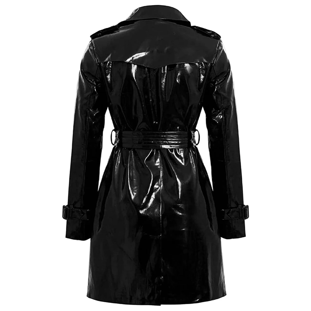 Women’s Faux Leather Double-Breasted Trench Coat