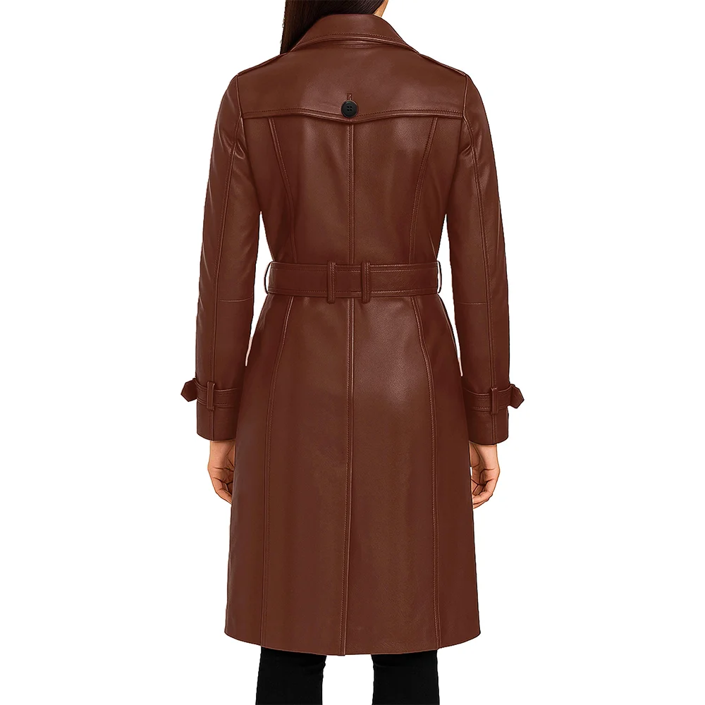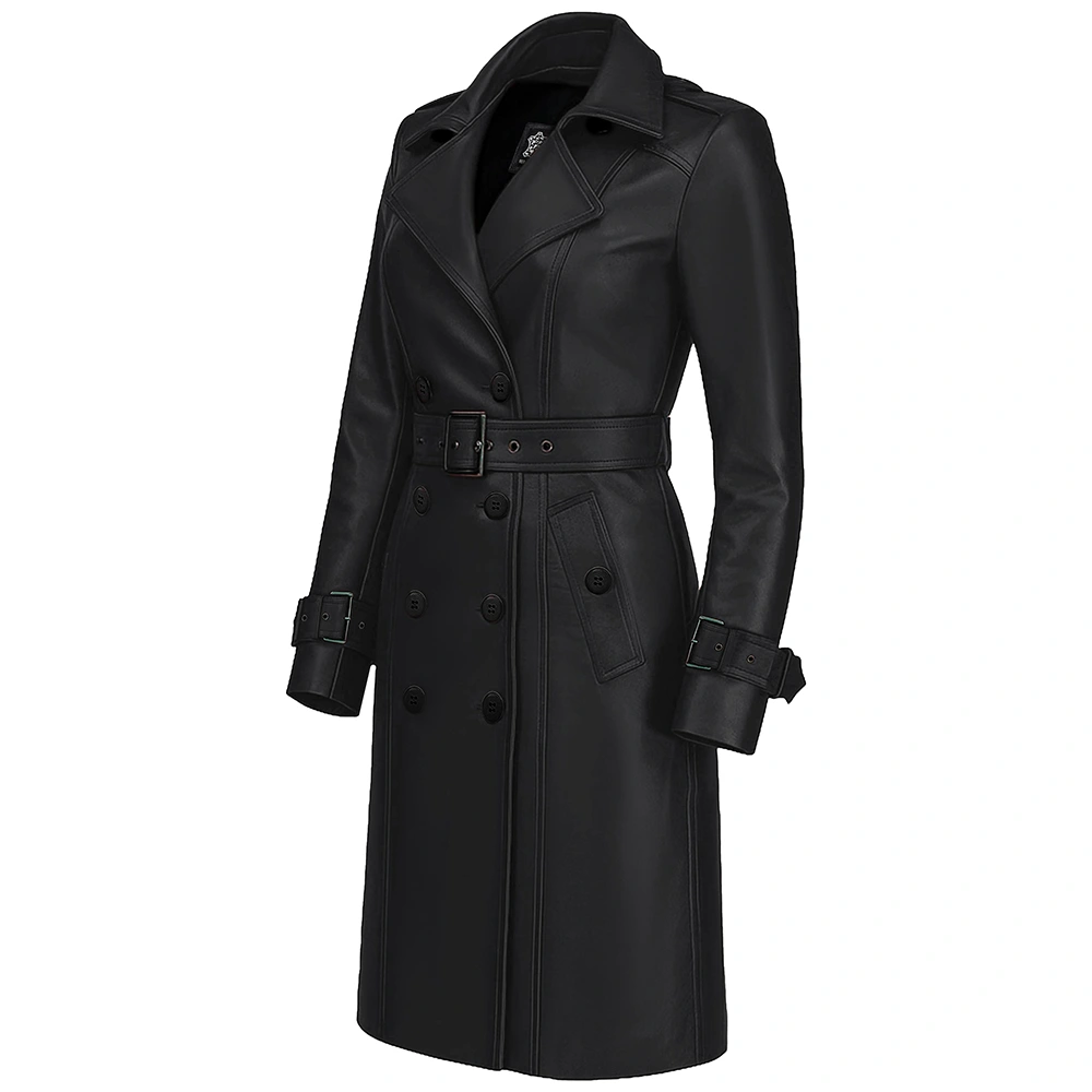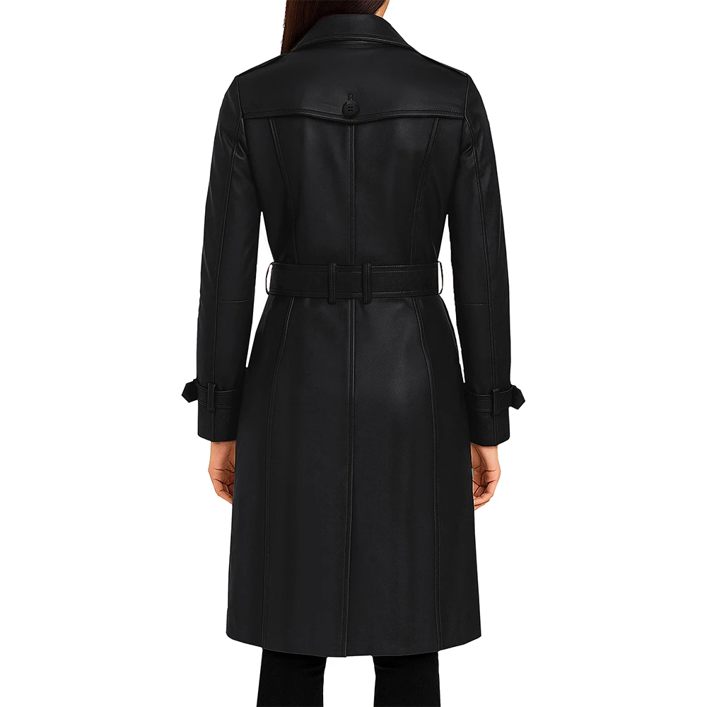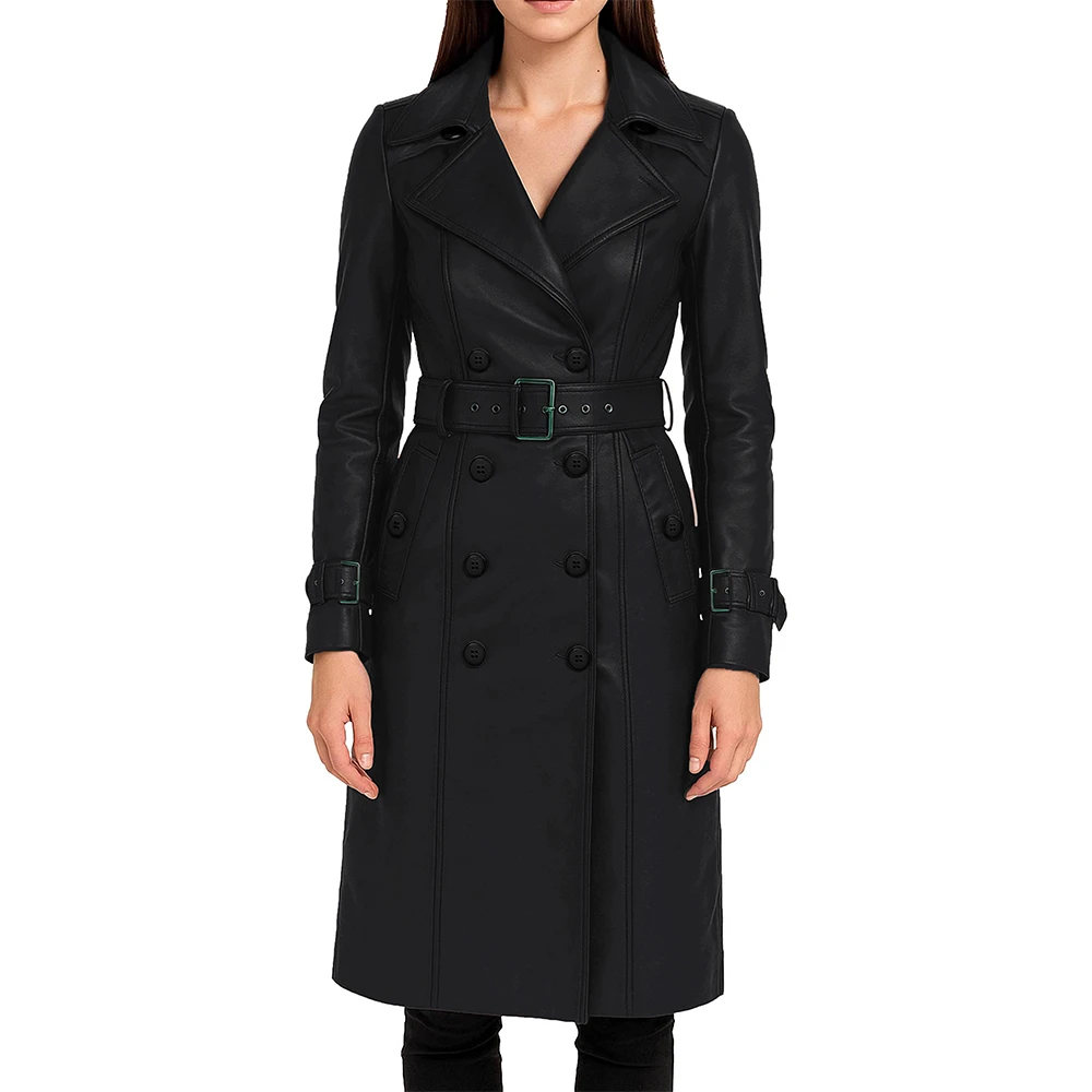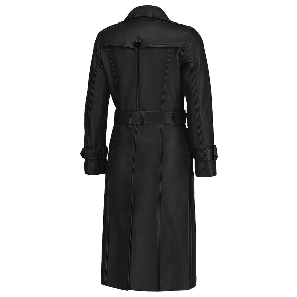 Women’s Double Breasted Lambskin Leather Trench Coat For Sale