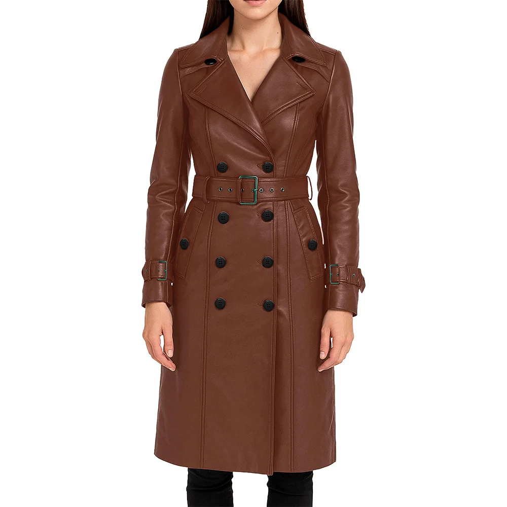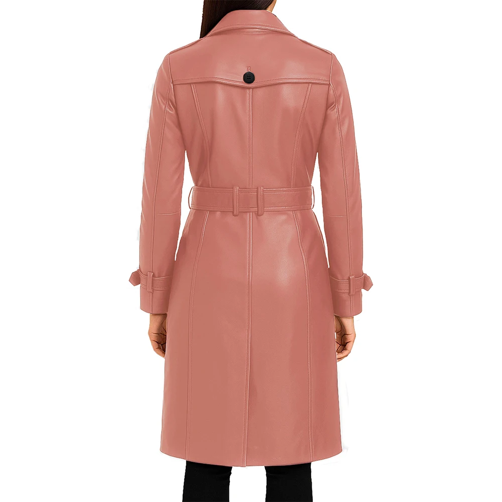 The wide variety of colours in Women’s Multicolor Lambskin Leather Trench Coat makes it stand out. It gives the freedom to find a shade that suits your personality. Moreover, this coat comes in beige, black, maroon, cognac, pink and red; it is easy to adjust to various moods and occasions. Also, the knee-length clean design makes it timeless and gives you a tall, flattering posture. Furthermore, it also prevents it from going out of style. The double-breasted closure enhances durability, and reinforced seams make it ideal for rough and frequent usage. Above all, we made this trench coat of high-quality leather material with a tailored fit. It has a confident feel and makes it look like a custom-made garment. As a result, you will receive a versatile investment piece that offers lasting value, refined presence and everyday reliability.