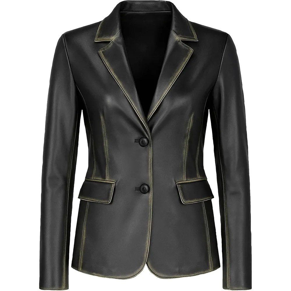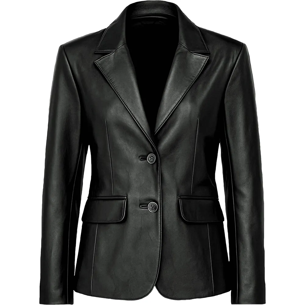 Women’s Two Button Real Leather Blazer Jacket