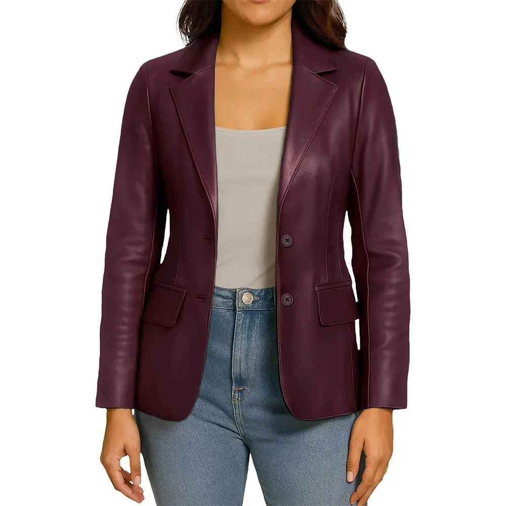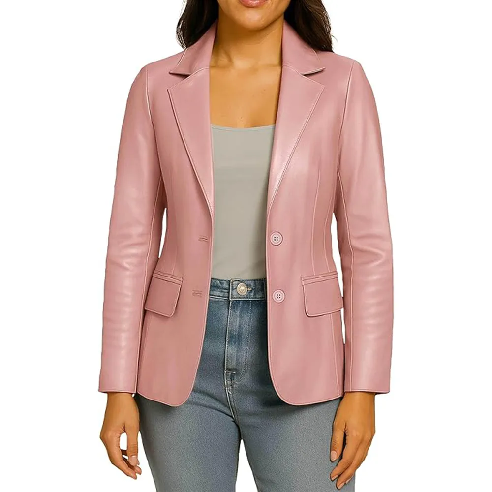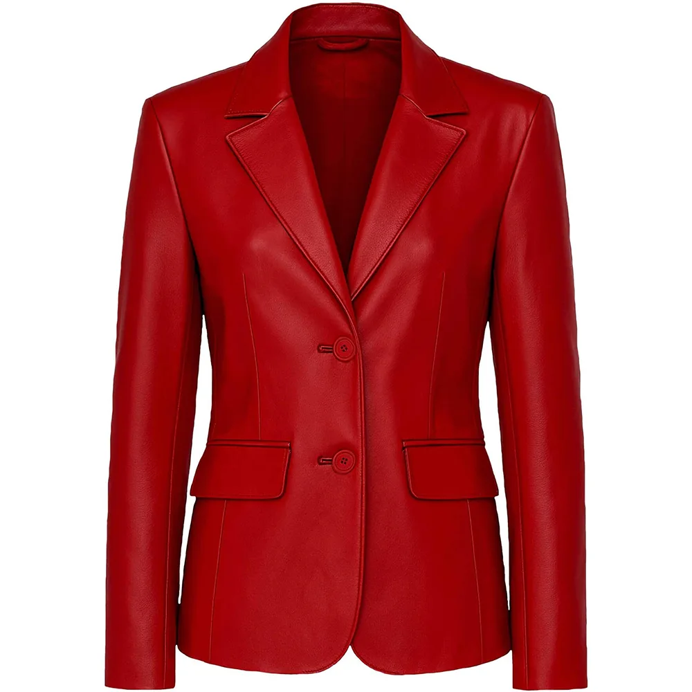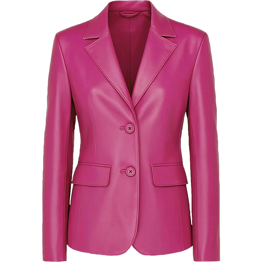 Women’s Two Button Real Leather Blazer Jacket For Sale